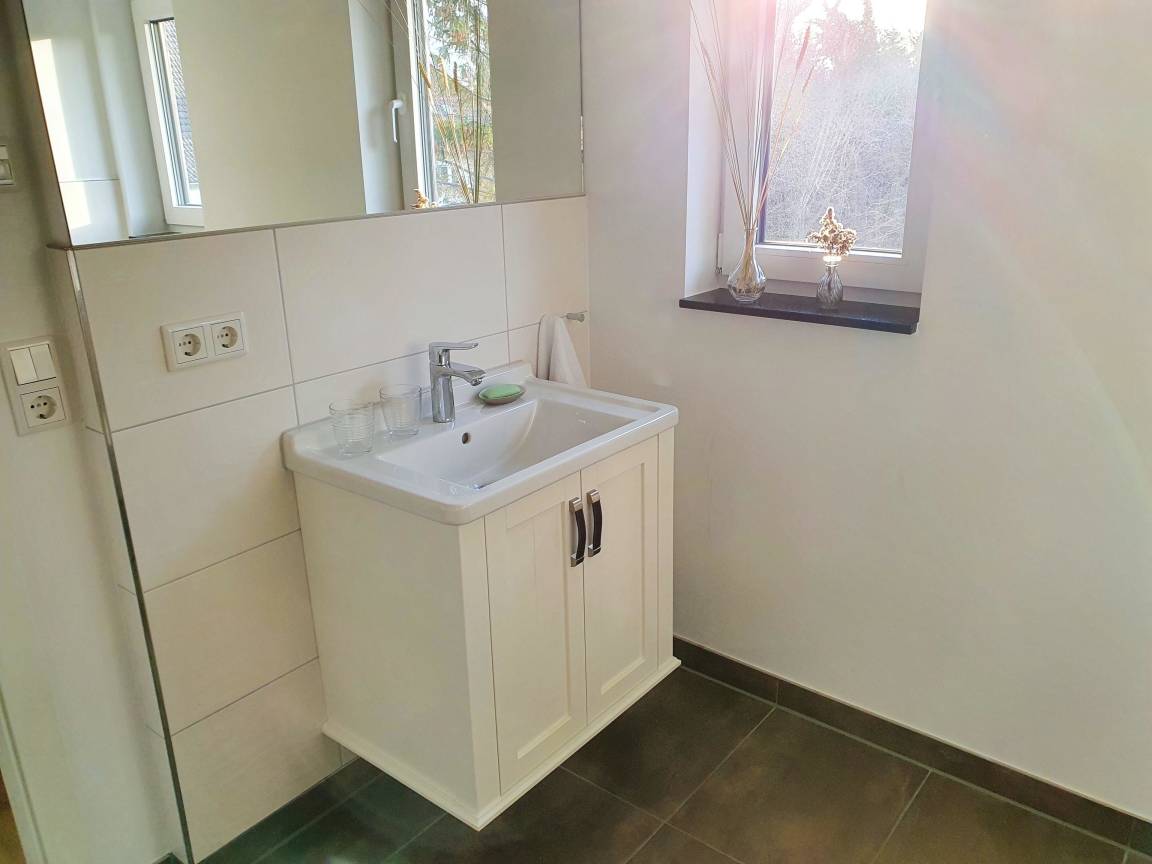 Das Duschbad ist mit einer großzügigen Dusche und WC modern eingerichtet.