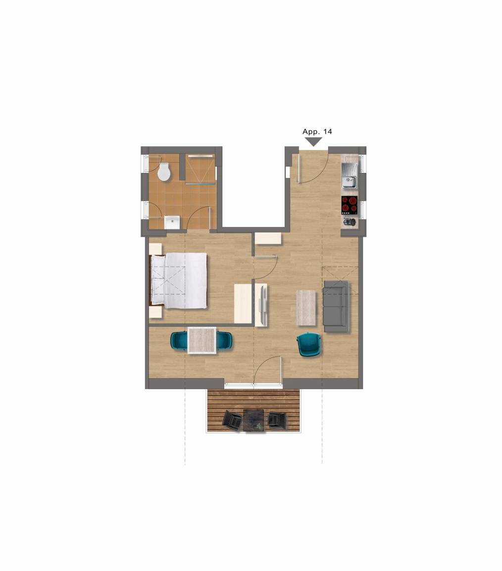 43 m² Ferienwohnung ∙ 1 Schlafzimmer ∙ 2 Gäste
