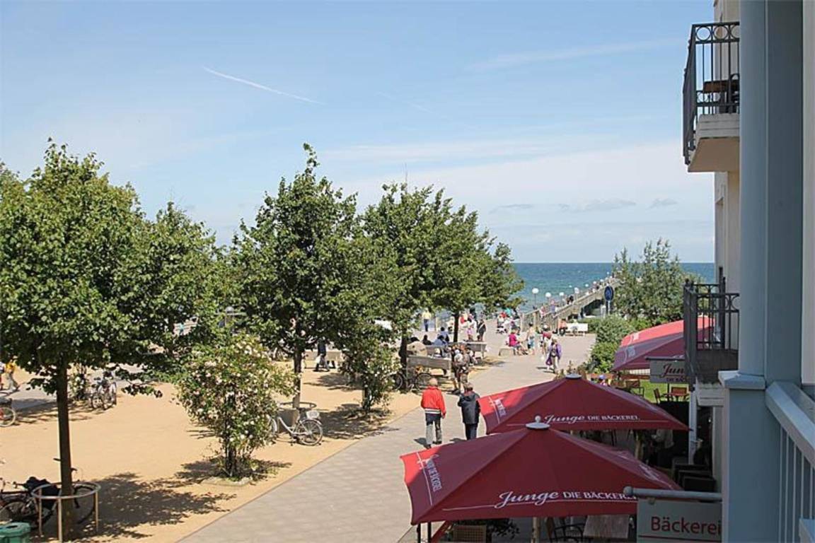Genießen Sie Ihren Aufenthalt zum Relaxen auf dem überdachten Balkon. Lassen Sie sich dabei von der untergehenden Sonne verwöhnen und genießen Sie die phänomenale Aussicht auf die Promenade und die Seebrücke.