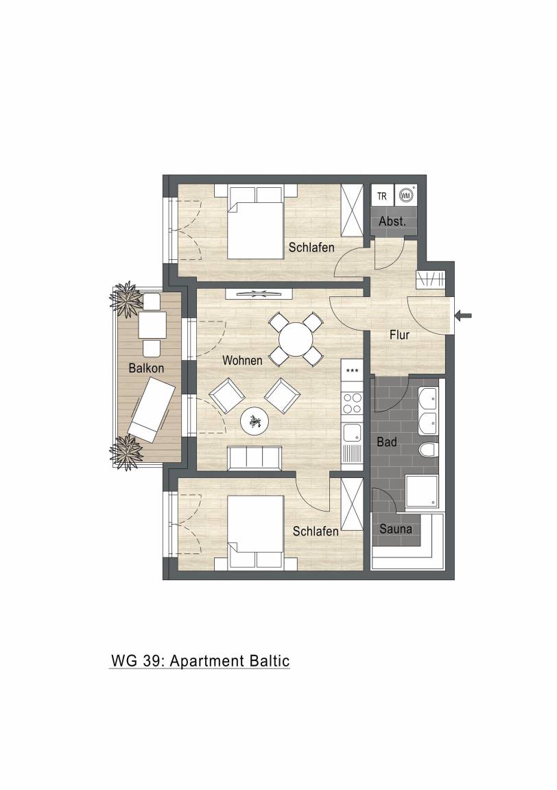 68 m² Ferienwohnung ∙ 2 Schlafzimmer ∙ 4 Gäste
