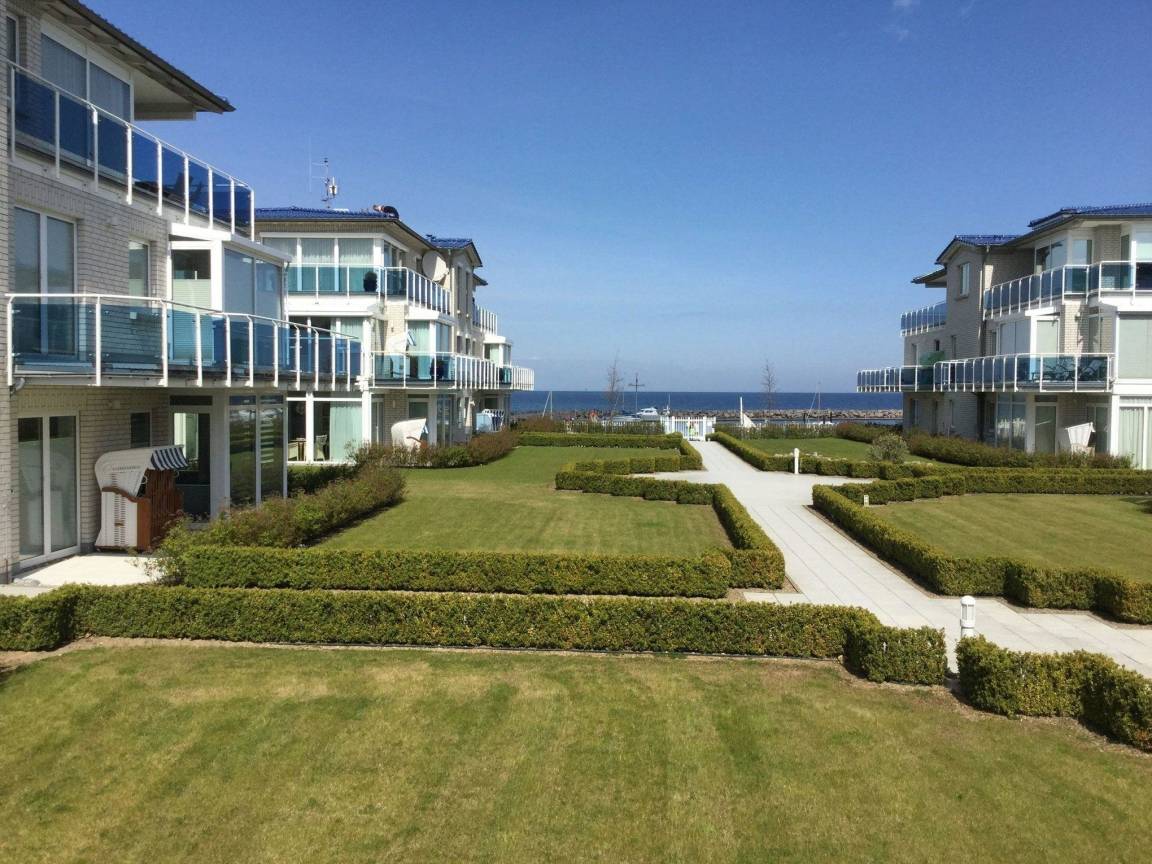 Die 61 m² große Wohnung für 3 Personen befindet sich im Erdgeschoss und verfügt über einen problemfreien ebenerdigen Zugang mit Süd-Ost-Terrasse, die einen schönen Blick über den Yachthafen und das Meer ermöglicht.