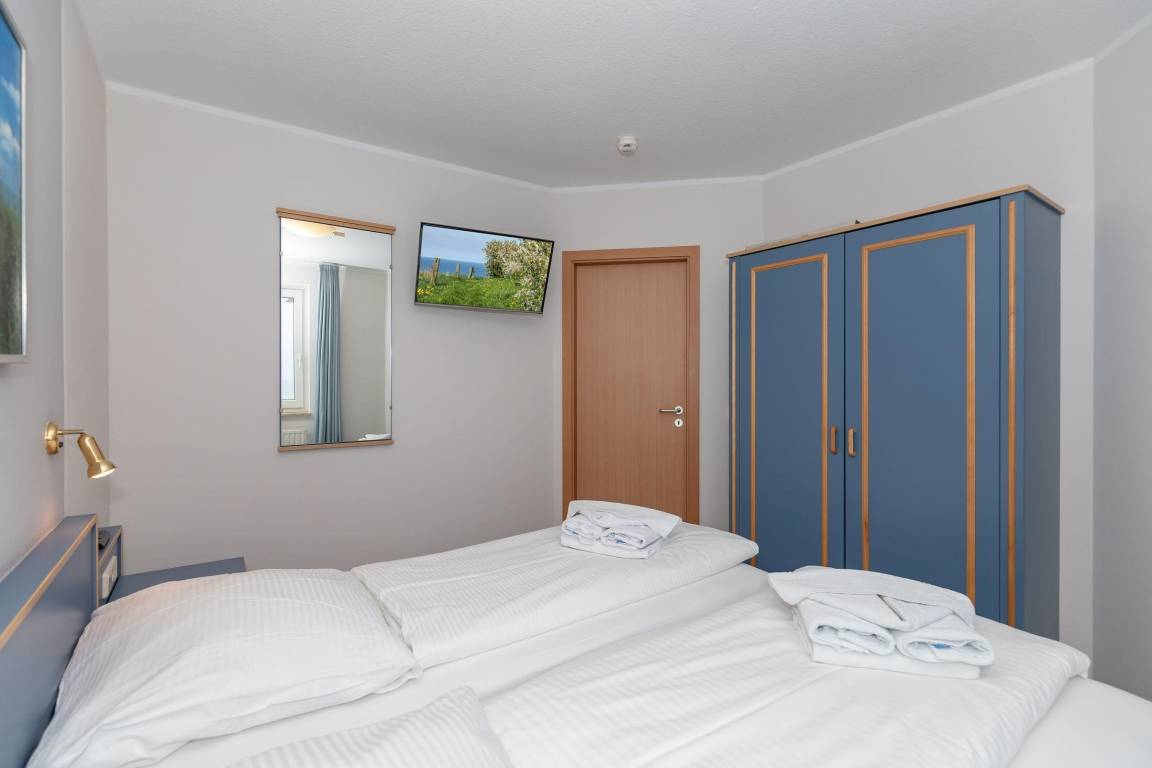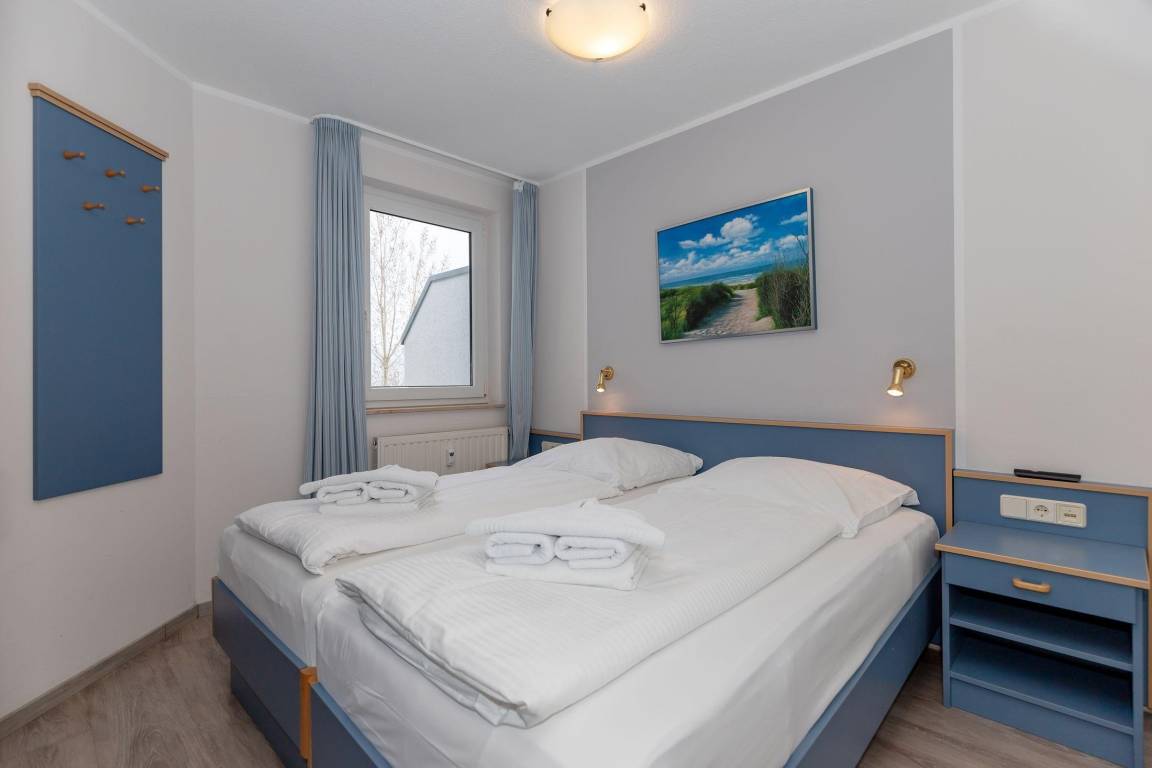 Das separate Schlafzimmer ist mit einem Doppelbett mit Extra-Topper eingerichtet. Hier liegen Sie richtig - für einen erholsamen Schlaf. Ein zusätzliches Fernsehgerät rundet die Gemütlichkeit im Schlafzimmer ab.