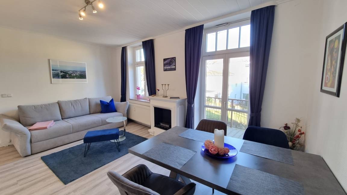 Die ansprechende und hochwertig eingerichtete 52 m² große 2-Zimmer Ferienwohnung ist über das Treppenhaus am Eingang 30A in der Strandstraße im 1. Obergeschoss zu erreichen.