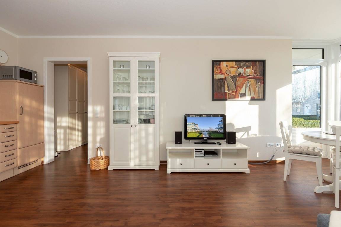Alle Einrichtungsgegenstände im Wohnbereich strahlen Komfort und Behaglichkeit aus. In der Sofa-/Sesselecke können Sie wunderbar entspannen, ein Flachbildschirm-TV sorgt dabei für Ihre Unterhaltung. Durch die Schlaffunktion des Sofas finden zwei weitere Personen einen bequemen Schlafplatz.
