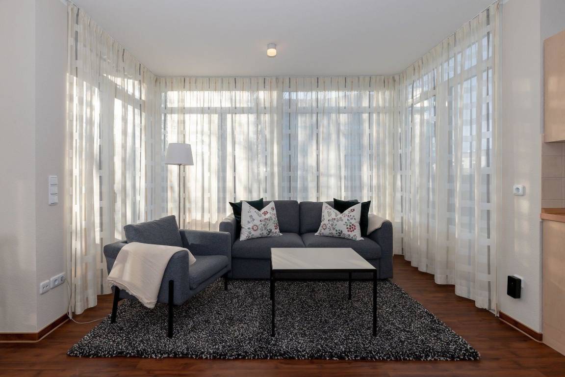 Die großen Fenster lassen viel Licht in die hochwertig ausgestattete Wohnung und tauchen sie in ein warmes und freundliches Ambiente. Sie ist komplett mit Fliesen/Laminat ausgelegt und dadurch auch für Allergiker geeignet.