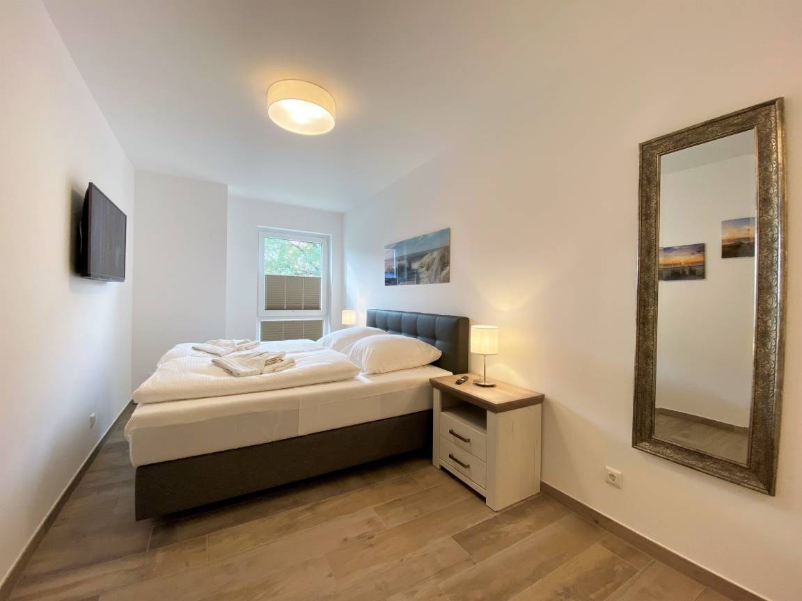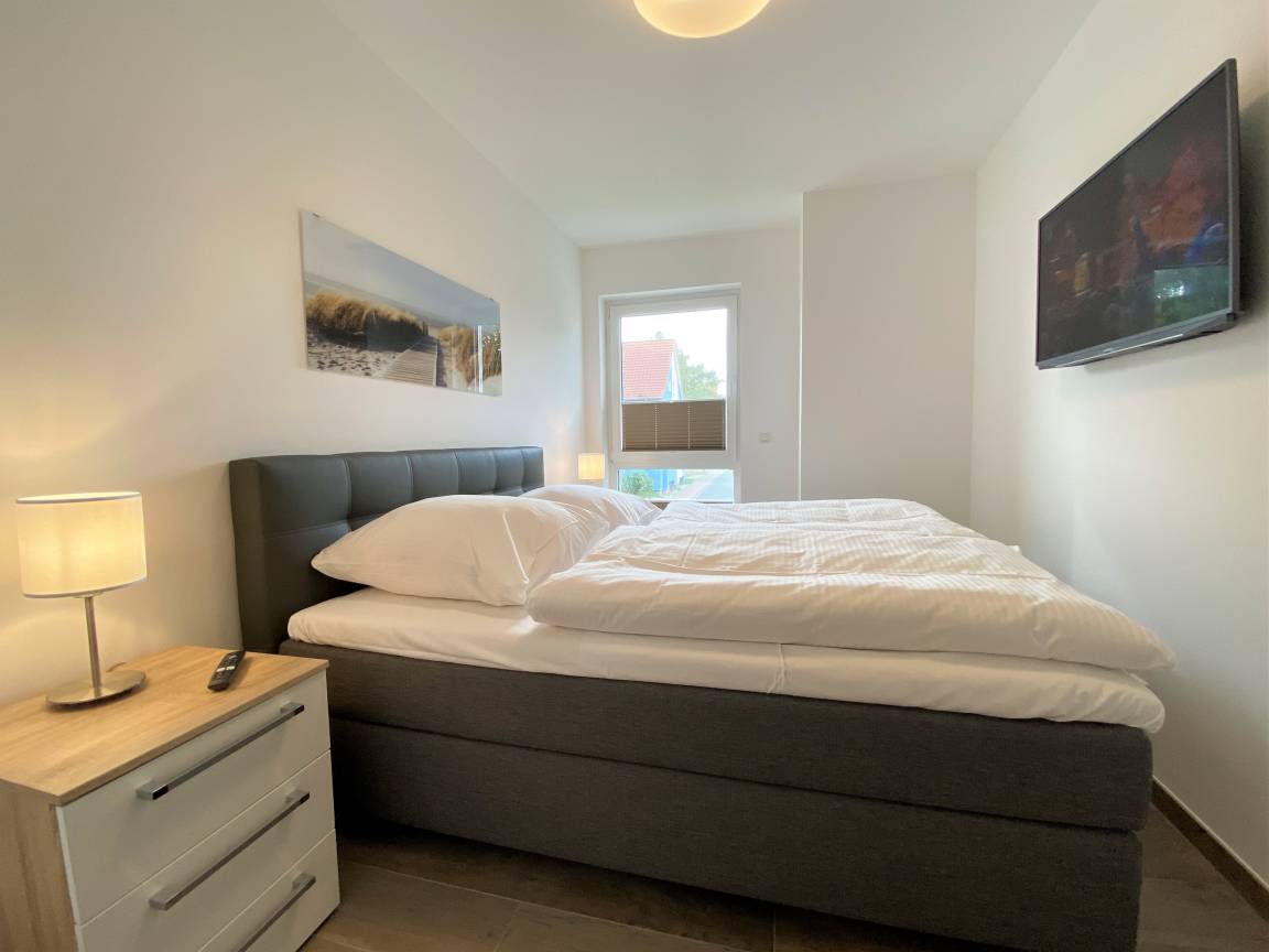 Die beiden komfortablen Schlafzimmer bieten Ihnen jeweils ein gemütliches Boxspringbett (1,80x2,00m, durchgängige Topper), einen geräumigen Kleiderschrank mit viel Platz für die Urlaubsgarderobe sowie zwei weitere 43 Zoll Smart-TV's zum Entertainment.