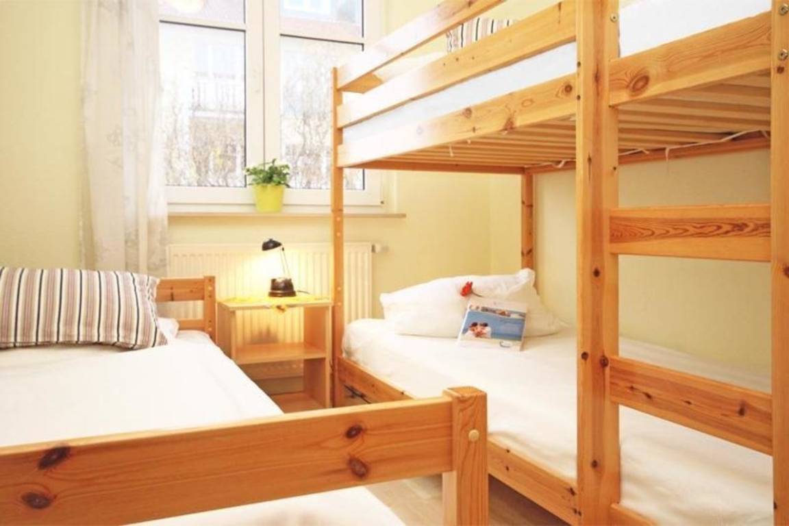 Die hell und freundlich anmutende Drei-Raum-Wohnung für bis zu 5 Personen ist zur sonnigen Ostseite sowie zur Hermannstraße gelegen und befindet sich im 1. Obergeschoss.