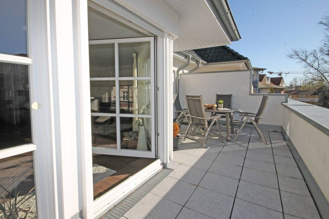 Ein absolutes Highlight der attraktiven Wohnung ist die umlaufende Dachterrasse mit einer Größe von insgesamt 48 m². Hier können Sie in Ruhe Ihren Morgenkaffee genießen und auch die untergehende Abendsonne bewundern. Bequeme Terrassenmöbel laden zum Relaxen und Verweilen ein.