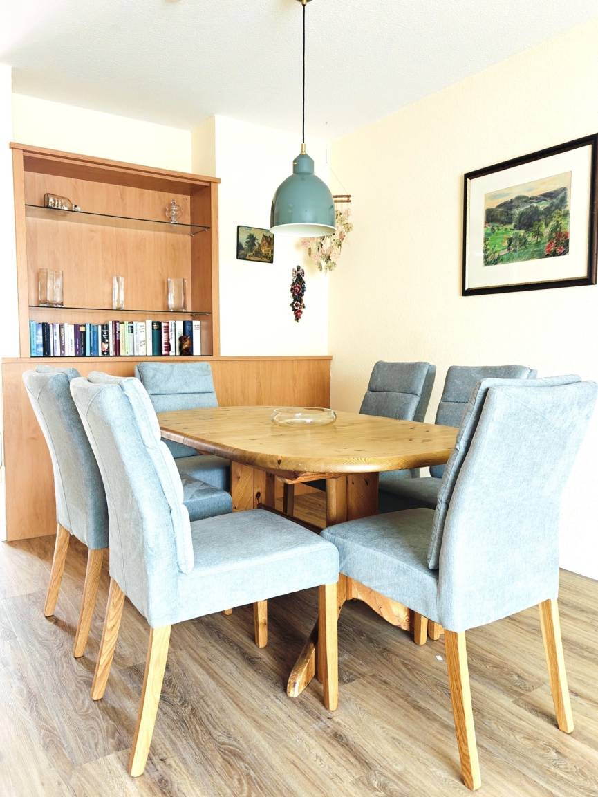 Eine gemütliche Sitzecke mit Sofa und Sessel, einer separaten Essecke, einer Küche mit allem erdenklichen Zubehör, ein kleines Gäste-WC stehen Ihnen zur Verfügung.