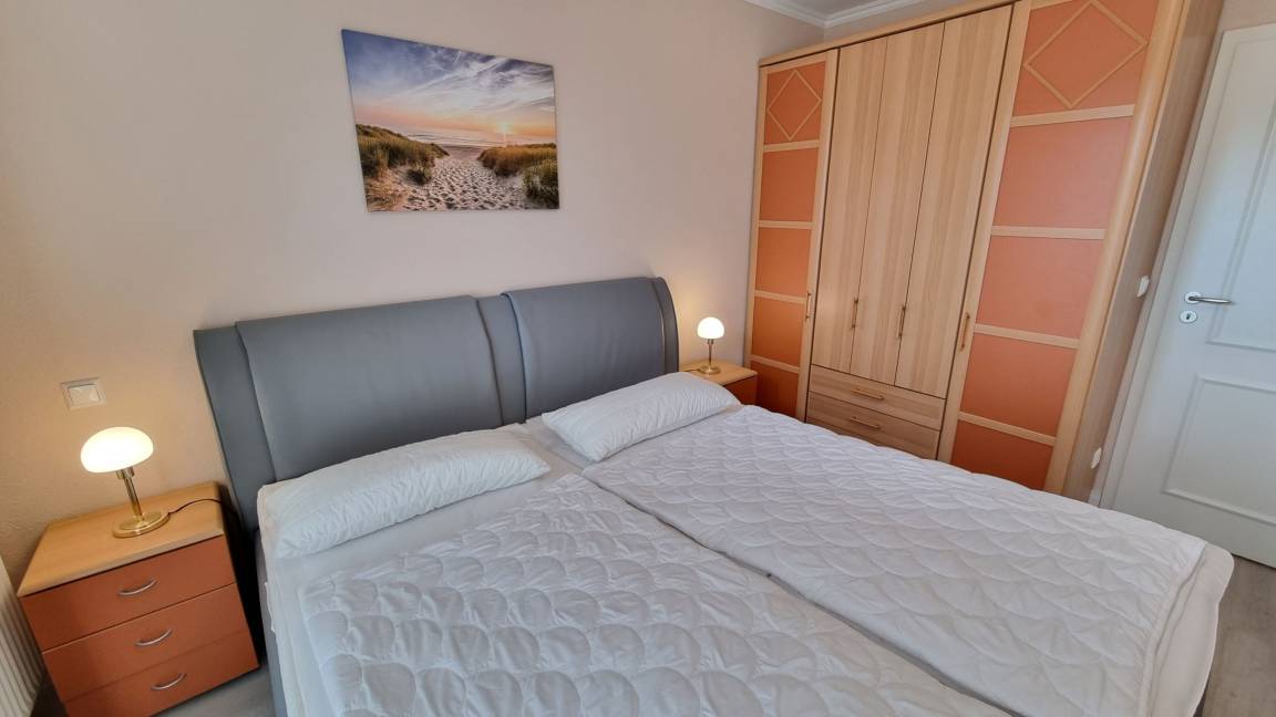 Im großen Schlafzimmer finden Sie ein Doppelbett vor.