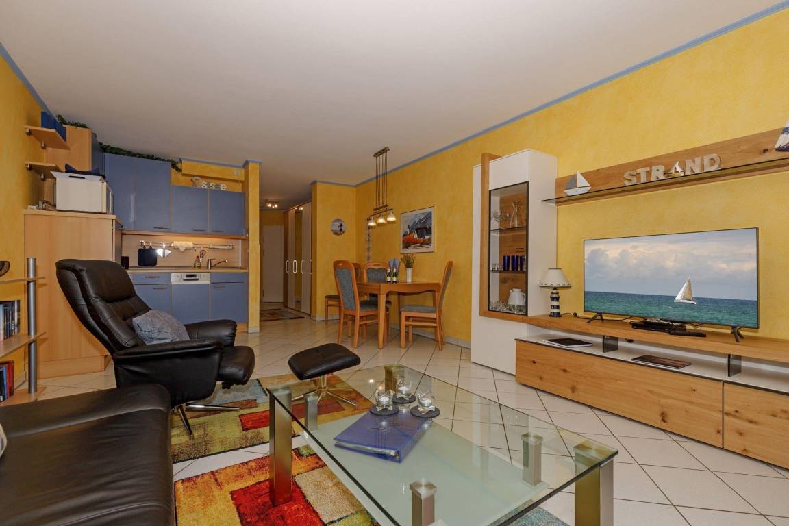 Zwischen Sandstrand/Seebrücke/Yachthafen und Anlage (ca. 600 m entfernt) befindet sich die attraktive Bummelmeile Strandstraße mit zahlreichen Einkaufsmöglichkeiten, Geschäften und einer umfangreichen Gastronomie für jeden Geschmack.
