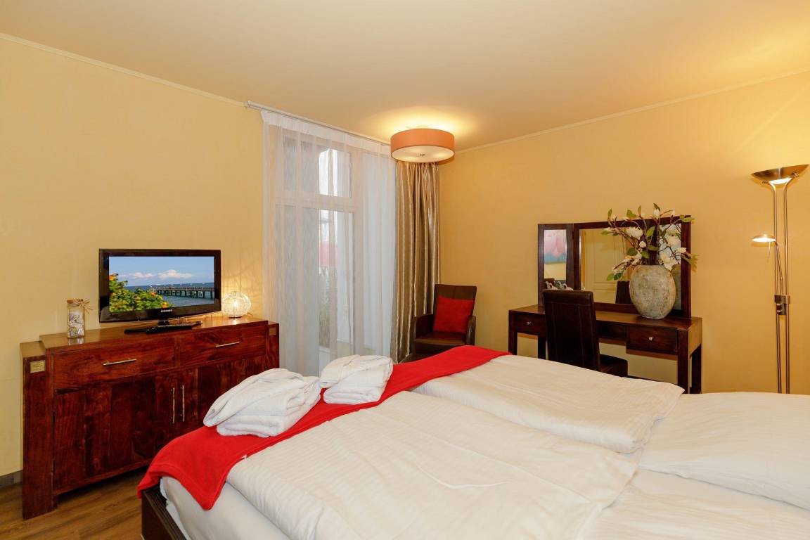 Freuen Sie sich auf ein stilvolles Urlaubsdomizil im Hochparterre des attraktiven Apartmenthauses "Villa Patricia". Dieses geschmackvoll eingerichtete 2-Raum-Apartment für bis zu 4 Personen wird Sie begeistern.