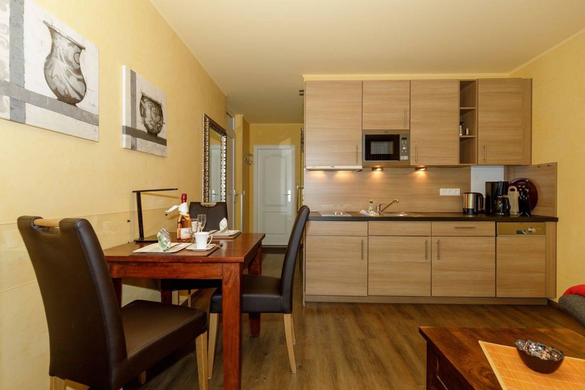 Die offene und voll ausgestattete Küchenzeile lässt keine Wünsche offen. Hier stehen Ihnen alle Küchenutensilien zur Verfügung, die in einer modernen Küche nicht fehlen dürfen.