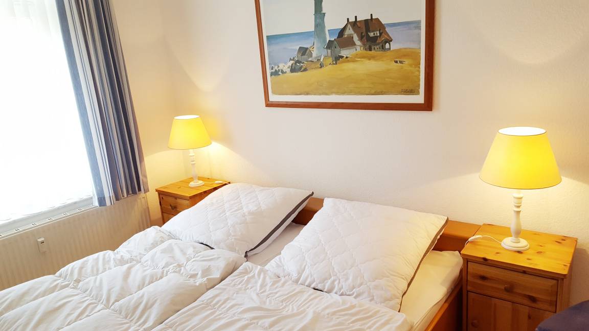 Im Schlafzimmer finden Sie ein Doppelbett. Ein Duschbad/WC ergänzt die Fewo.