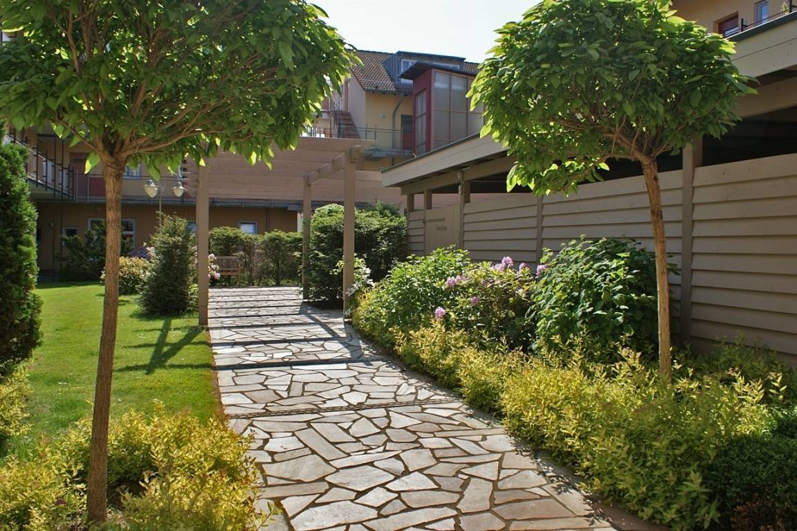 Unsere Anlage besteht aus 6 Häusern, die miteinander verbunden sind. Im Erdgeschoss befinden sich einige Ladengeschäfte, Cafés und Restaurants sowie behindertenfreundliche Ferienwohnungen.