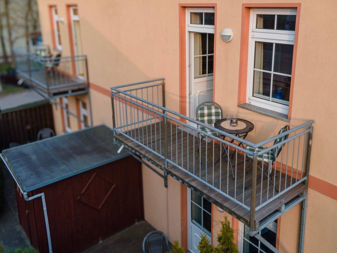 Genießen Sie entspannte Stunden auf dem einladenden Balkon, hier stehen Ihnen Gartenmöbel zum Relaxen zur Verfügung.