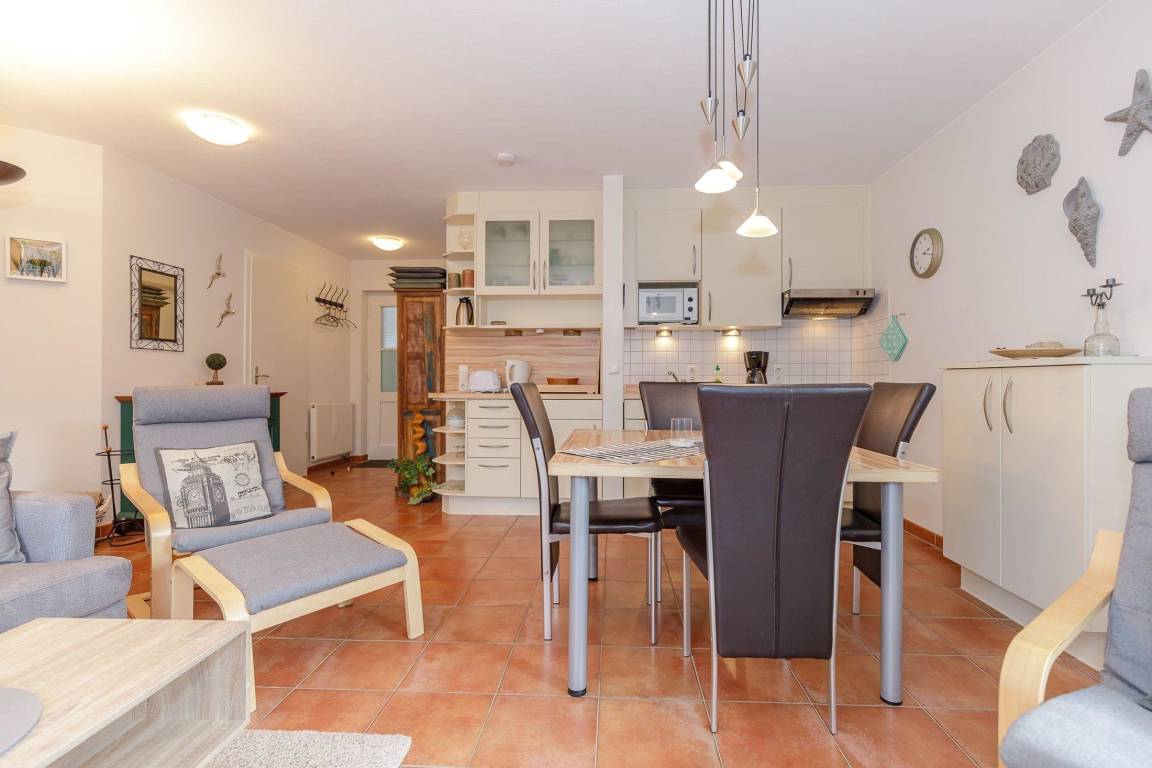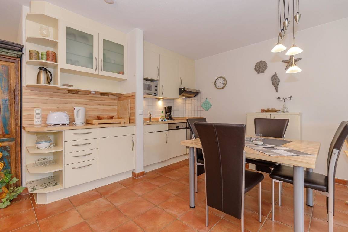 Der Küchenbereich beinhaltet einen Esstisch für die gemeinsamen Mahlzeiten und eine voll ausgestattete Küche, die Ihnen alle Bequemlichkeiten für die Zubereitung Ihrer Mahlzeiten bietet. Hier fehlt es Ihnen an nichts.