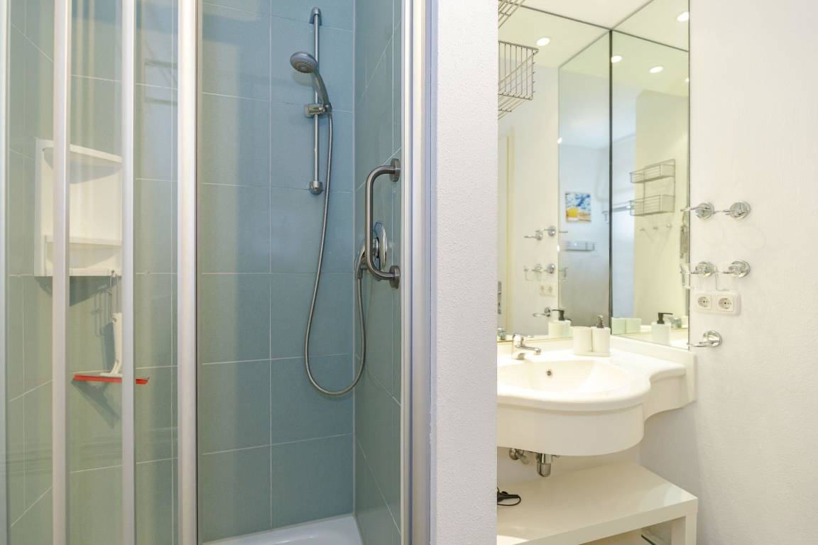Das Badezimmer verfügt über eine Dusche, ein WC In dem Bad finden Sie neben Dusche und WC einen großzügig angelegten Waschtisch mit üppiger Spiegelfläche und vielen Ablagemöglichkeiten. Ein Föhn ist ebenfalls vorhanden.