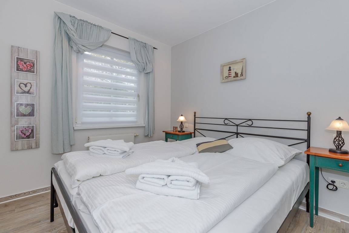 Das Schlafzimmer mit einem komfortablen Doppelbett, einem geräumigen Kleiderschrank und diversen Ablagemöglichkeiten bietet eine angenehme Atmosphäre zur Entspannung nach einem aufregenden Tag in Kühlungsborn.