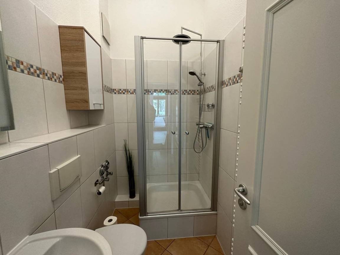 Im hinteren Teil der Wohnung befindet sich das Duschbad und das abgeschlossene, sehr ruhig gelegene Schlafzimmer mit einem 160 x 200cm großen Bett.