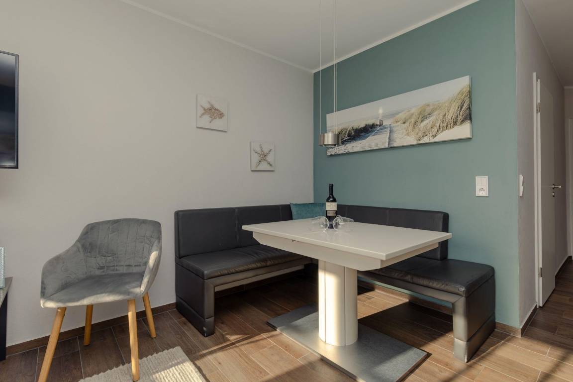 In der komplett ausgestatteten Küche können Sie morgens bei einer leckeren Tasse Kaffee richtig wach werden oder zusammen mit Ihrem Liebsten ein tolles Abendessen zaubern und genießen. Hierfür steht ein Cerankochfeldherd mit Backofen, ein Kühlschrank, eine Spülmaschine, Wasserkocher, Kaffeemaschine und Toaster zur Verfügung.