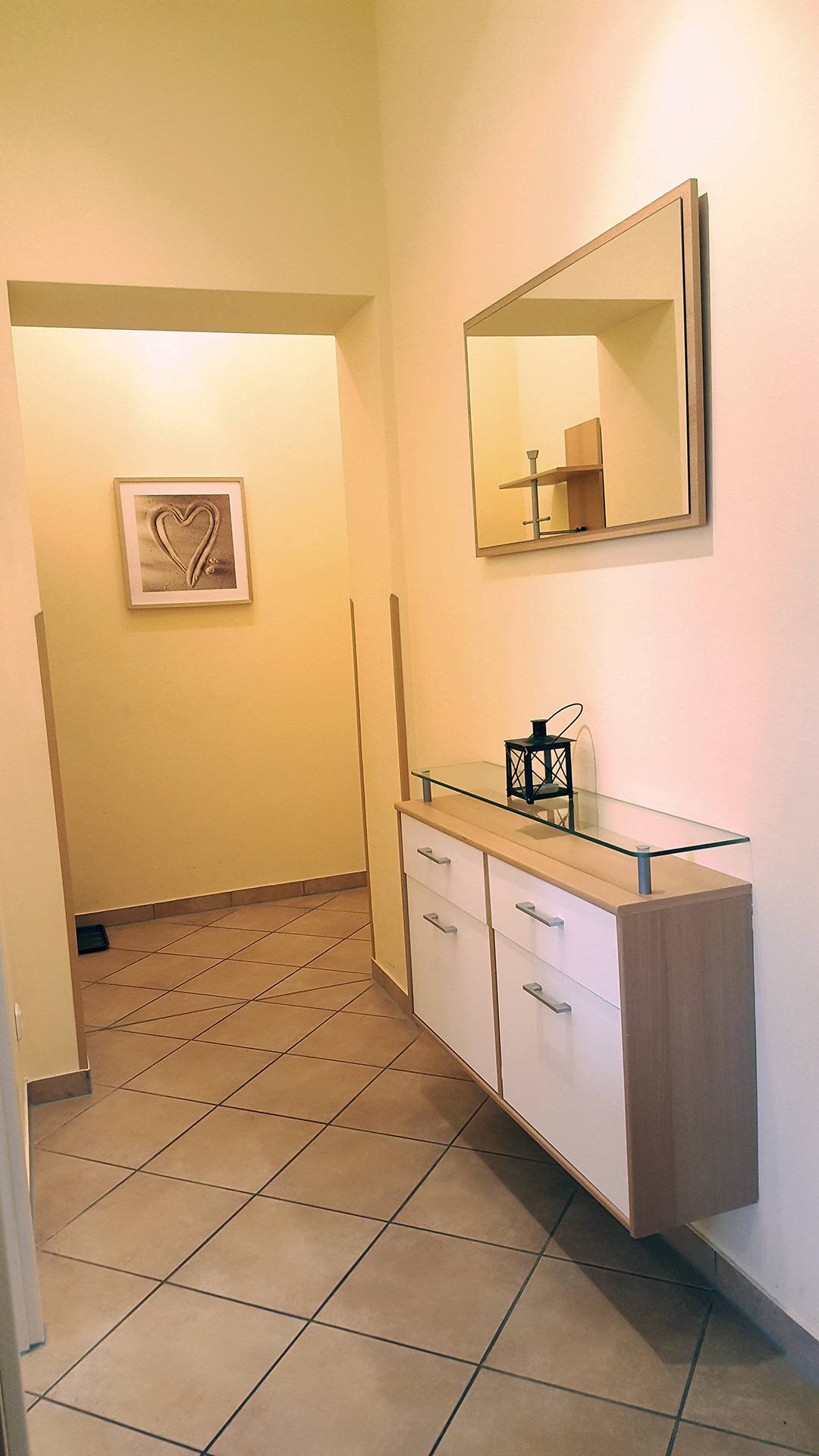 Die 62 m² große, geschmackvoll eingerichtete 3-Zimmer Ferienwohnung, für bis zu 4 Personen liegt im Hochparterre des Hauses auf der Süd-/Westseite.