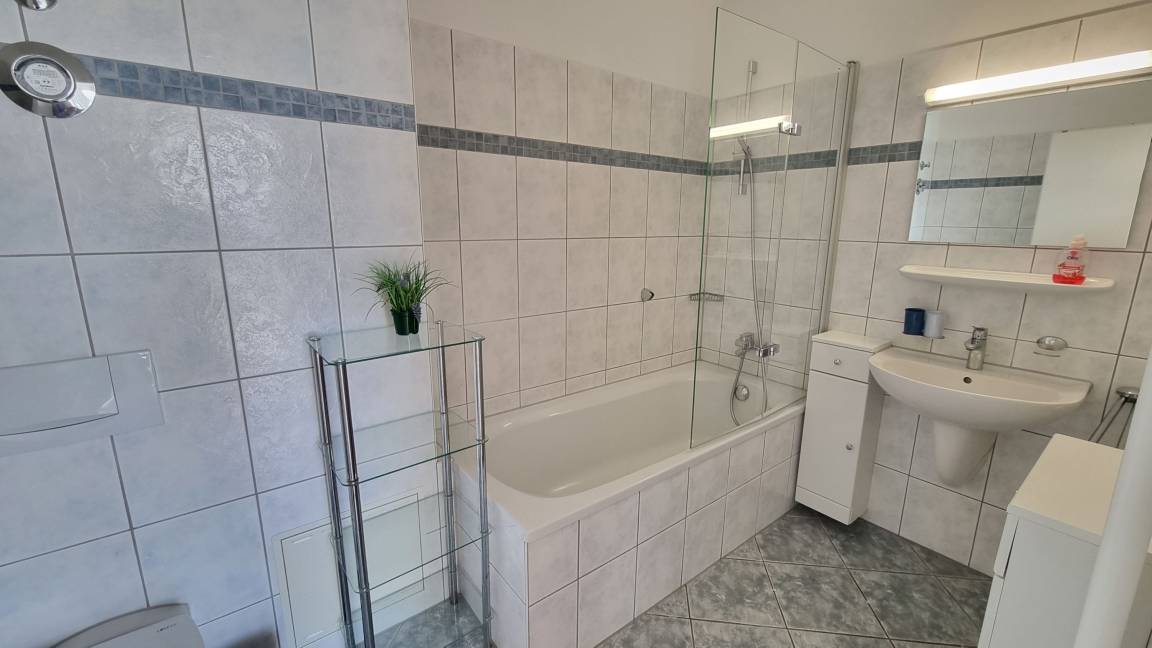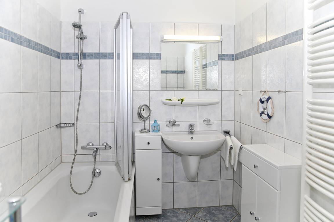 Ein Wannenbad/WC ergänzt die Ferienwohnung. Zur technischen Ausstattung gehören Hifi-Anlage + Farb-TV.