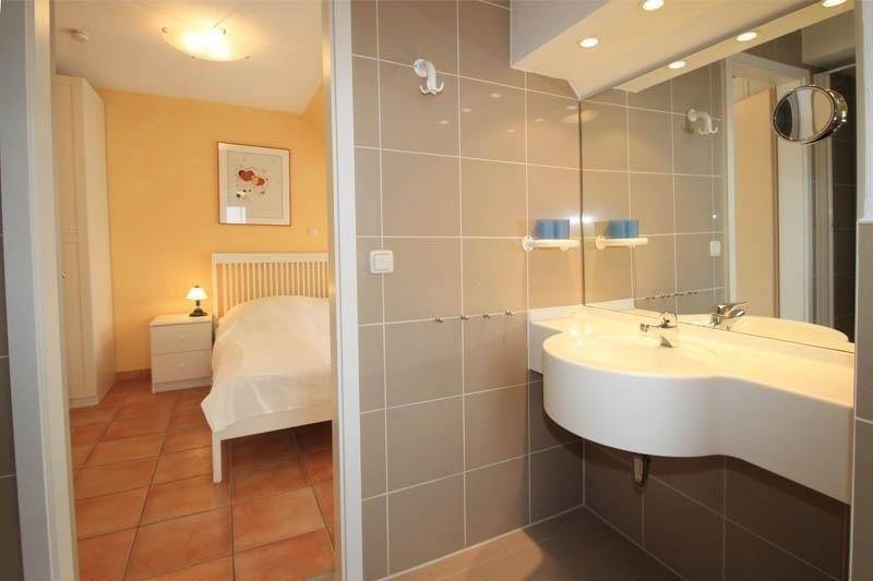 Vom Schlafzimmer aus gelangen Sie in das mit einem Fenster ausgestatteten Bad, welches mit einer Dusche, einem WC, einem großzügigen Waschbecken, Föhn und einem großen Spiegel inklusive Kosmetikspiegel ausgestattet ist.