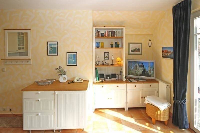 Die liebevoll eingerichtete Wohnung im 3. Obergeschoß verfügt über einen lichtdurchfluteten Wohnraum mit Schlafcouch für eine Person sowie zwei gemütliche Sessel und Flachbild-TV.
