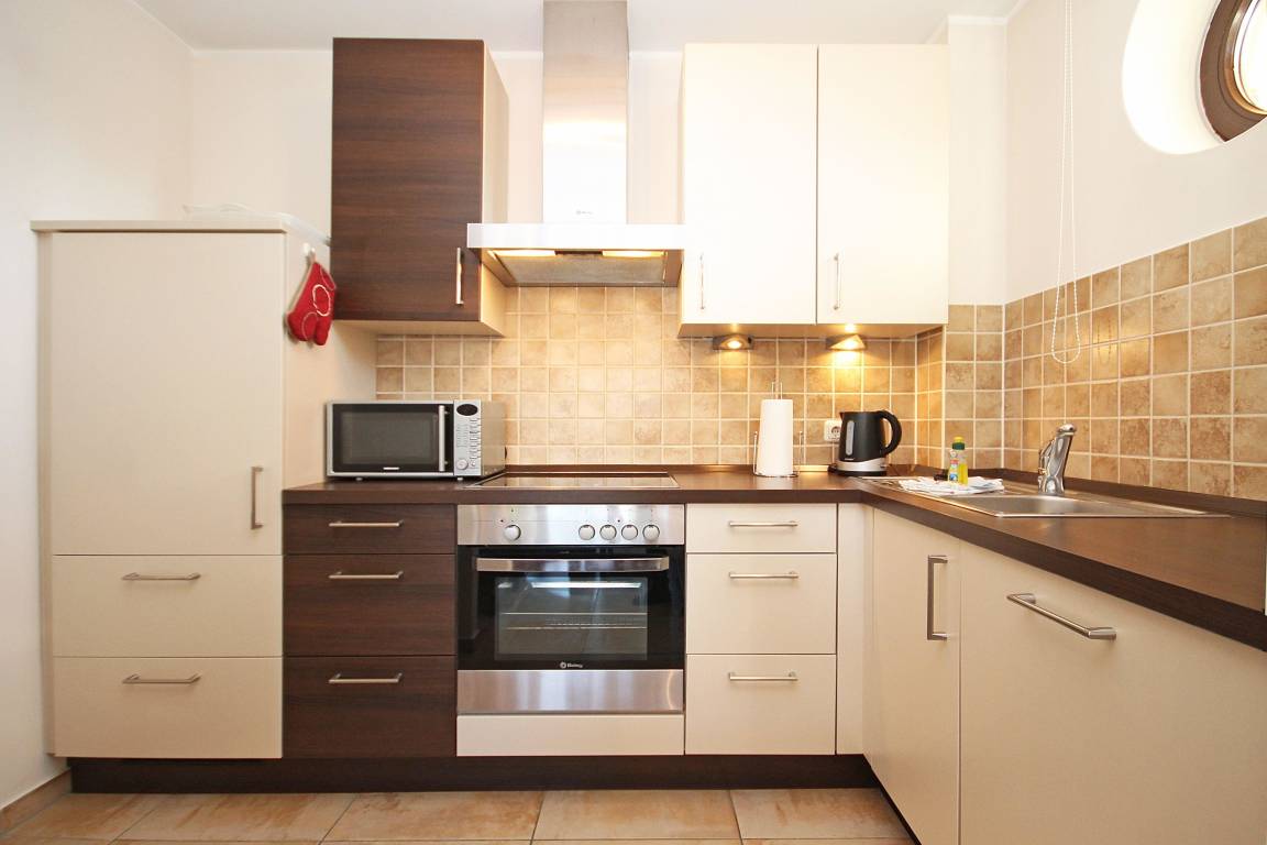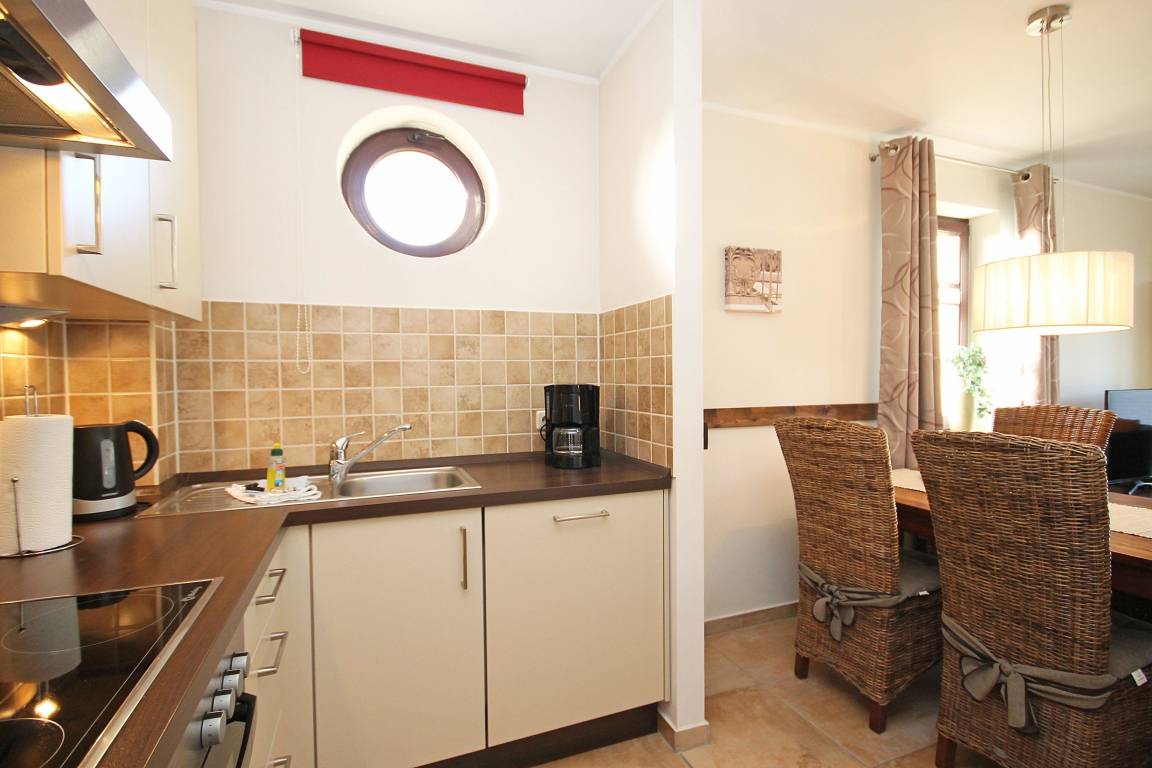 Die voll ausgestattete, halb offene Küche grenzt direkt an den Wohn-Essbereich und lässt keine Wünsche offen. Schnell und problemlos können Sie hier Ihre Lieblingsmahlzeit zaubern.