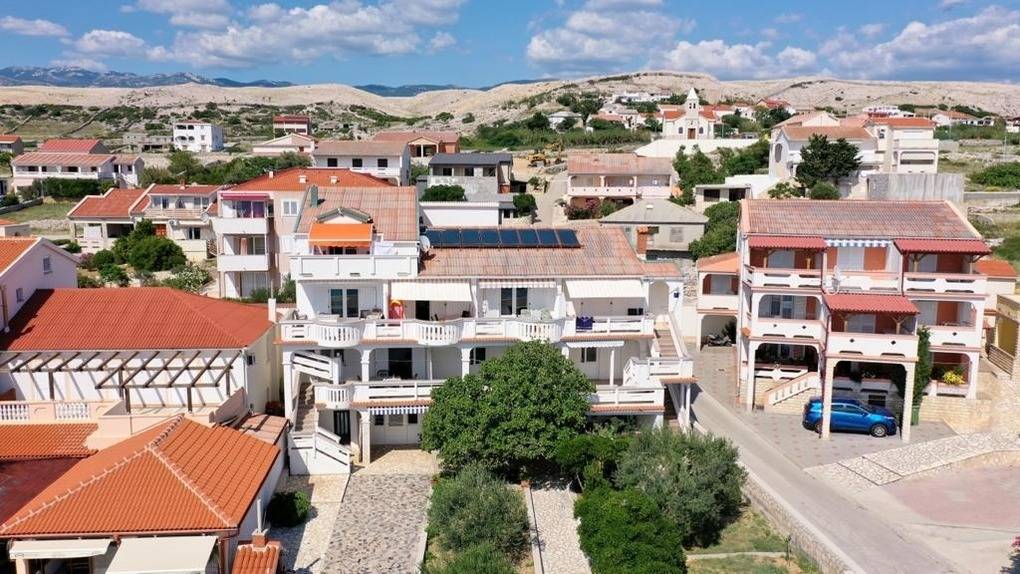 Es verfügt über 5 modern ausgestattete Appartements, die gemütlich und liebevoll eingerichtet sind. Die Appartements mit jeweils ca. 50 ² Wohnfläche sind mit Bad (Dusche/WC), einem separaten Schlafzimmer, einem Wohnraum mit Küche ausgestattet und besitzen einen sonnigen Balkon mit Meerblick. Der großzügige Südbalkon bietet einen herrlichen Ausblick auf das Meer und die Pager Bucht.