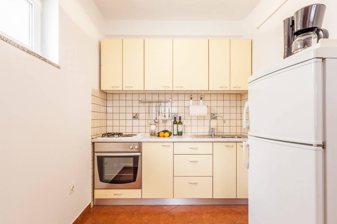 Es verfügt über 5 modern ausgestattete Appartements, die gemütlich und liebevoll eingerichtet sind. Die Appartements mit jeweils ca. 50 ² Wohnfläche sind mit Bad (Dusche/WC), einem separaten Schlafzimmer, einem Wohnraum mit Küche ausgestattet und besitzen einen sonnigen Balkon mit Meerblick. Der großzügige Südbalkon bietet einen herrlichen Ausblick auf das Meer und die Pager Bucht.