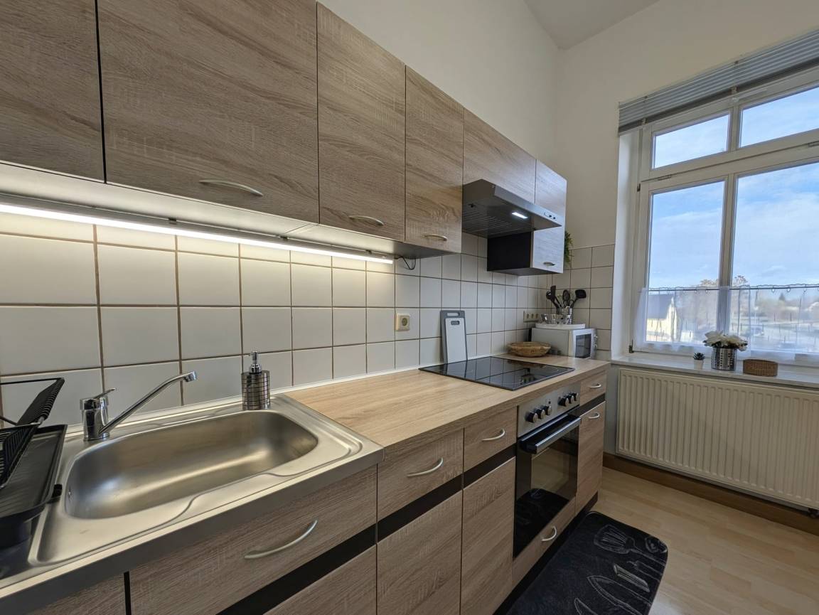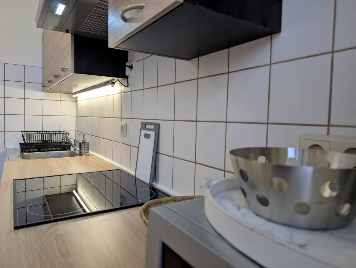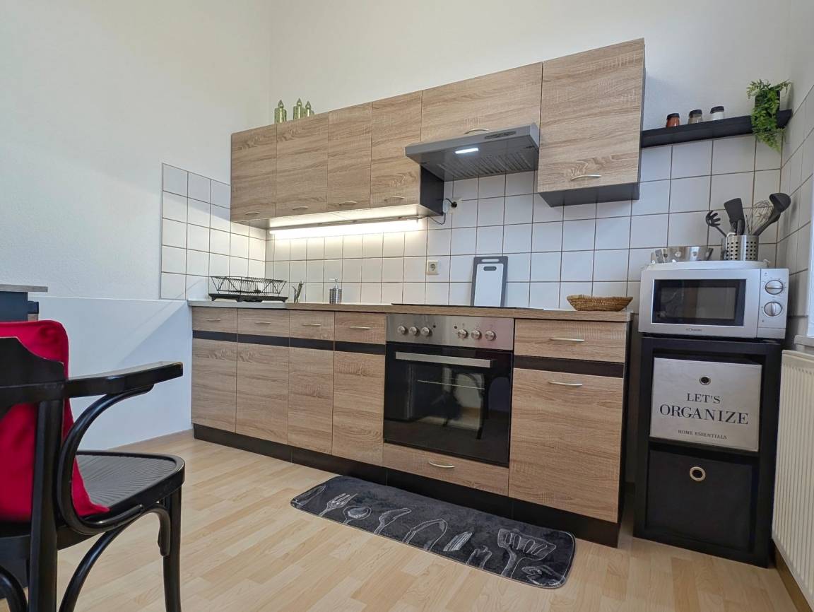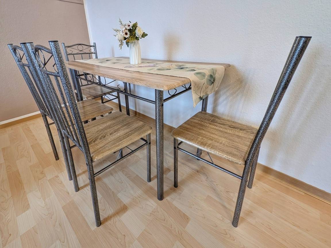 Unsere Ferienwohnung verfügt über ein helles und einladendes Wohnzimmer, das mit komfortablen Möbeln und einem Fernseher ausgestattet ist. Die offene Küche ist modern und komplett ausgestattet, sodass Sie Ihre Lieblingsgerichte zubereiten können. Genießen Sie Ihre Mahlzeiten am Esstisch, der Platz für bis zu vier Personen bietet.
