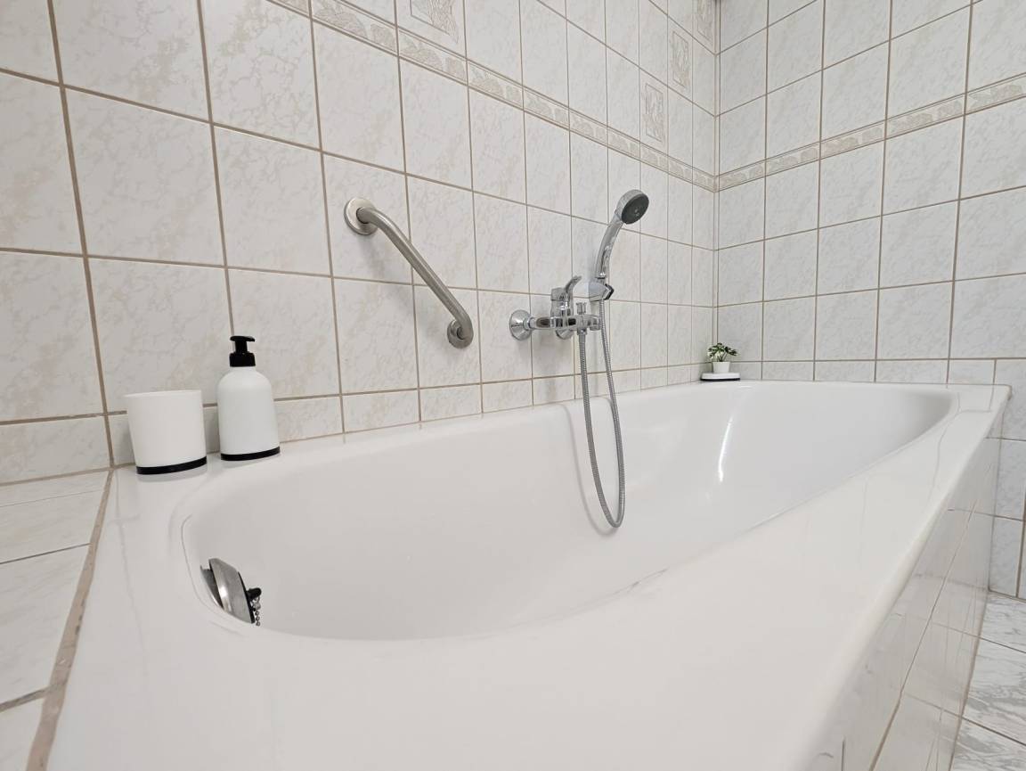 Die Wohnung bietet ein gemütliches Schlafzimmer, das mit einem bequemen Bett ausgestattet ist und für erholsame Nächte sorgt. Das Badezimmer ist modern und verfügt über eine Dusche und Wanne sowie alle notwendigen Annehmlichkeiten.