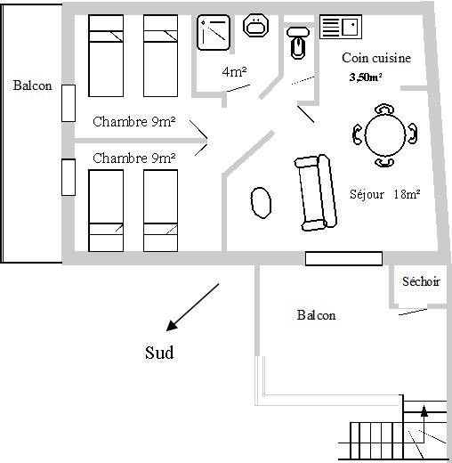 48 m² Gîte ∙ 2 Schlafzimmer ∙ 4 Gäste