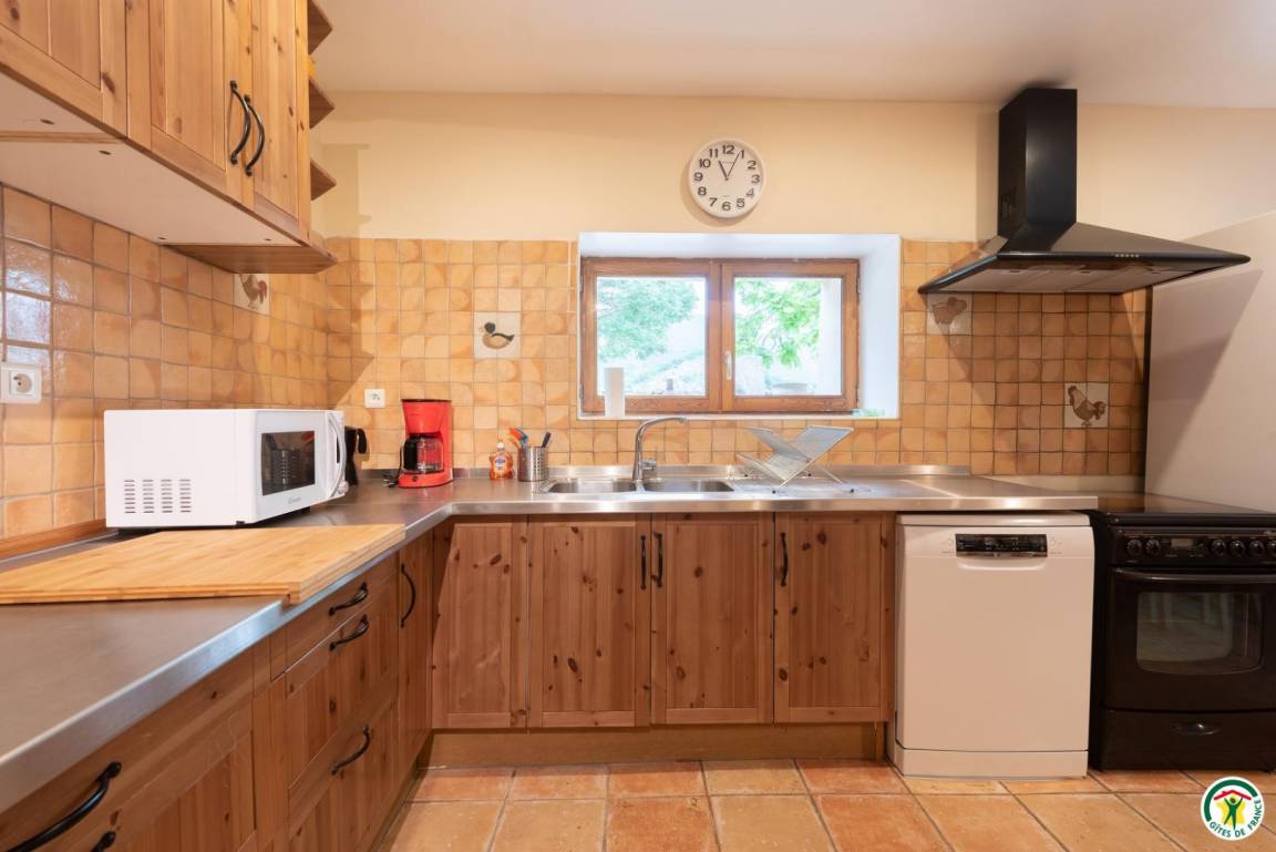 „Gite confortable et bien agencé5 chambres agréables à l'étage avec 2 salles de baincuisine digne d'un séjour avec sa grande table circulaire (et plateau central tournant) un séjour douillet avec chauffage par poële à boisgite vraiment très adapté à famille de 10 personnes“