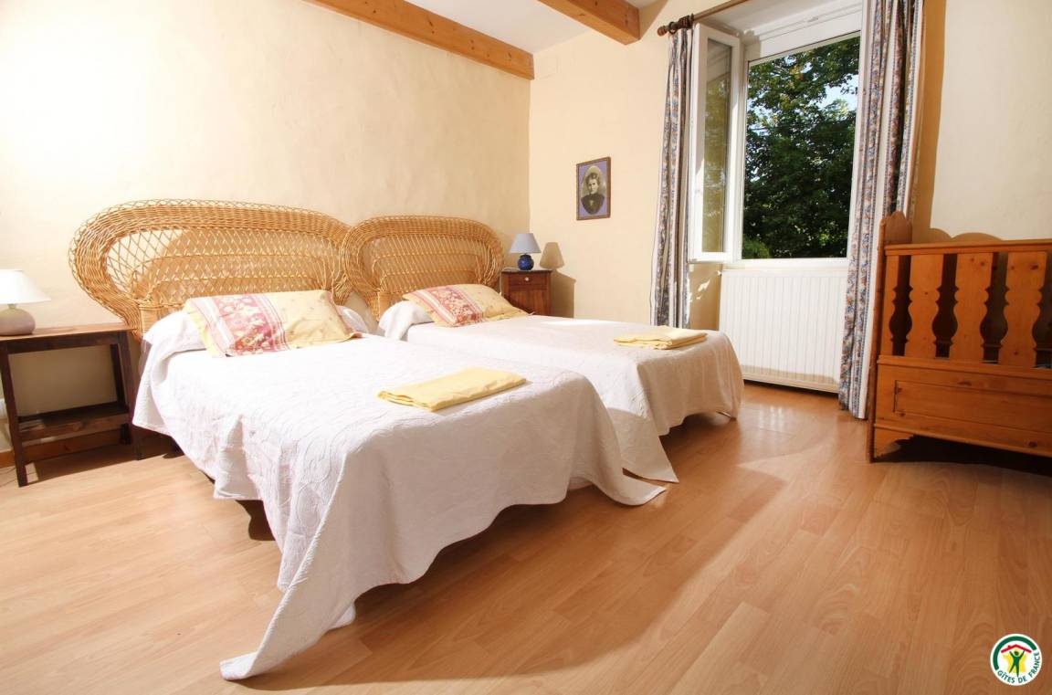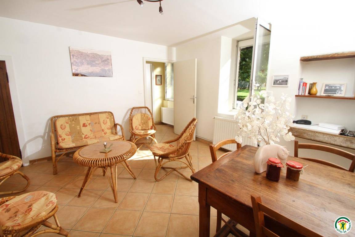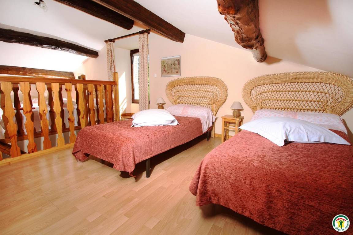 Die Unterkunft grenzt an den Zweitwohnsitz des Vermieters (in der Nähe einer Möbeltischler- und einer Mechanikerwerkstatt und der Landstraße D540). Erdgeschoss: Küche, zum Esszimmer hin offen, 1 Schlafzimmer (2 Betten 90 cm), Bad mit Dusche, WC, Waschküche. 1. Stock: 2 Schlafzimmer (1 Bett 140 cm) (2 Betten 90 cm), Bad mit Dusche/WC. 2. Stock: 1 Schlafzimmer (5 Betten 90 cm/Babybett). Spielplatz (Kinderspielgerüst), 16 m² große Terrasse. Eigener Garten. Saalvermietung möglich (45 m², mit Kamin).