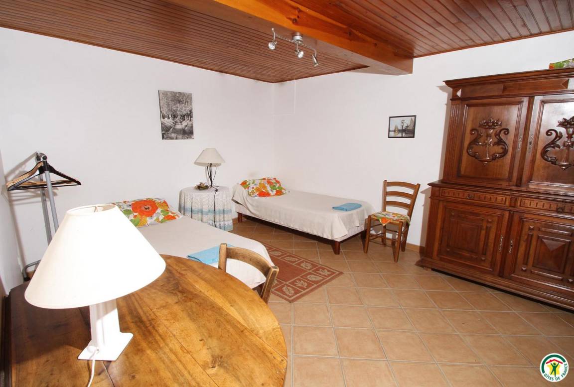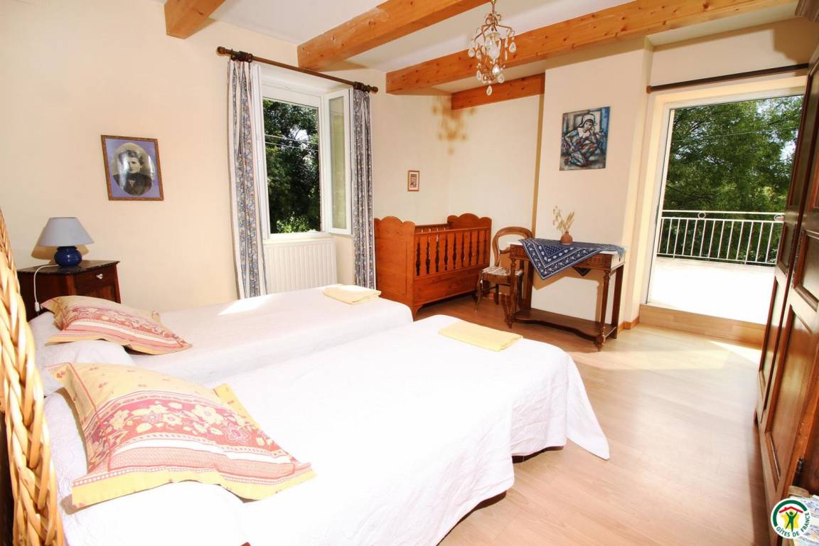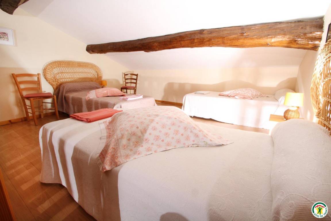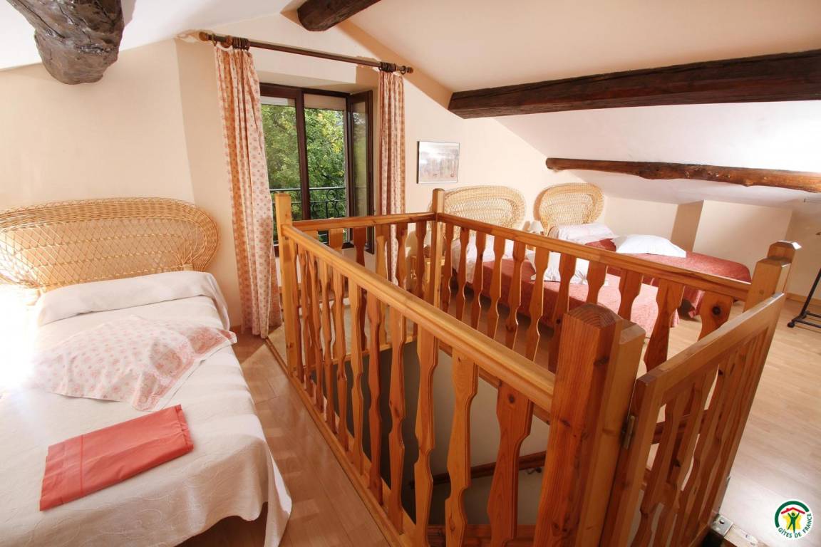 Die Unterkunft grenzt an den Zweitwohnsitz des Vermieters (in der Nähe einer Möbeltischler- und einer Mechanikerwerkstatt und der Landstraße D540). Erdgeschoss: Küche, zum Esszimmer hin offen, 1 Schlafzimmer (2 Betten 90 cm), Bad mit Dusche, WC, Waschküche. 1. Stock: 2 Schlafzimmer (1 Bett 140 cm) (2 Betten 90 cm), Bad mit Dusche/WC. 2. Stock: 1 Schlafzimmer (5 Betten 90 cm/Babybett). Spielplatz (Kinderspielgerüst), 16 m² große Terrasse. Eigener Garten. Saalvermietung möglich (45 m², mit Kamin).