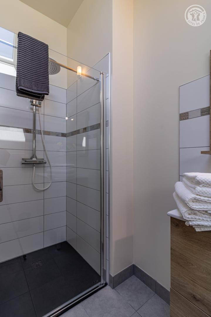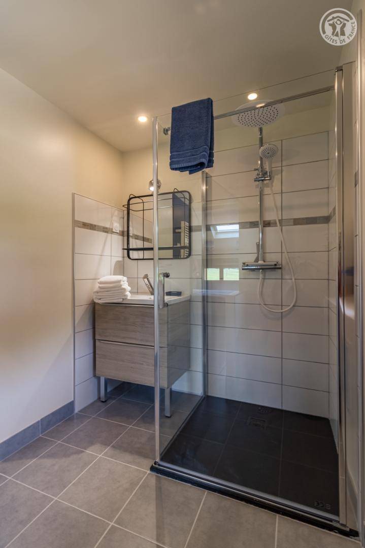 „Très joli gîte. L'agencement est parfait: 1 grande pièce à vivre au rdc avec la cuisine ouverte sur le salon et la salle à manger. A l'étage, 3 belles et grandes chambres avec chacune sa sdb et son wc. Il y a tout ce qu'il faut pour passer un excellent séjour. Nous nous sommes sentis comme chez nous dès le passage de la porte d'entrée.“