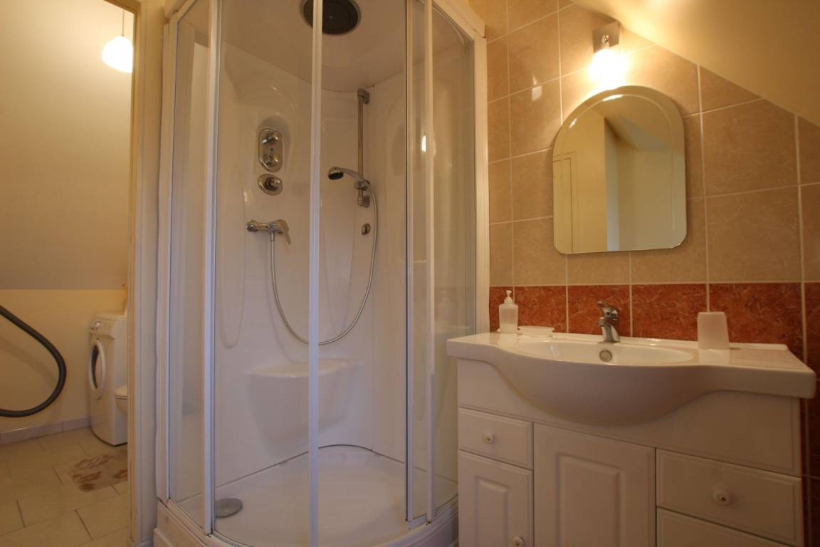 Freistehendes Haus. Erdgeschoss: Wohnzimmer, Kochnische. Obergeschoss: 1 Schlafzimmer (1 Doppelbett 160x200 cm und 1 Einzelbett 90x190 cm), Duschbad mit WC, TV, WLAN, Waschmaschine, Geschirrspüler. Bettwäsche und Handtücher können gemietet werden. Elektrische Heizung inklusive. Alle Nebenkosten inklusive. Reinigungsservice optional. Privater, umzäunter Garten, Terrasse, Gartenmöbel, Grill.