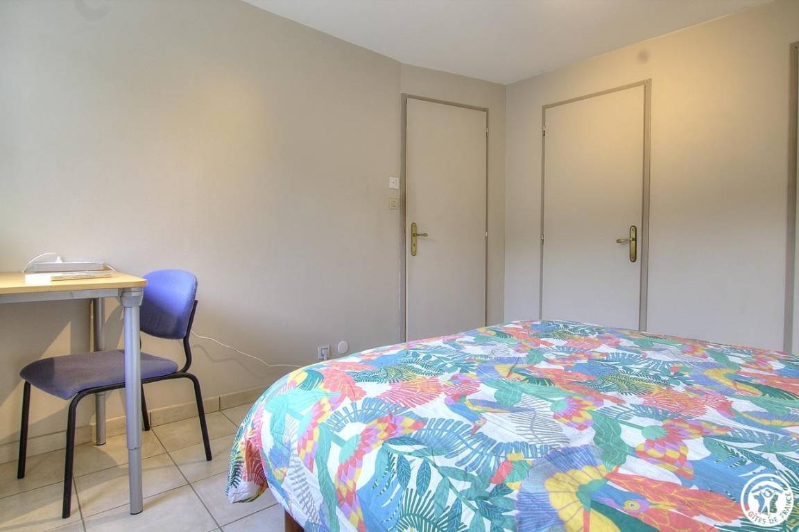 Küchenbereich mit Wohnzimmer und Lounge (160*200-Schlafsofa), 2 Schlafzimmer (eines mit 1 160*200-Bett und eines mit zwei 80*200-Betten, die zusammengestellt werden können). Duschraum mit WC. Keller mit Waschmaschine, Trockner und einem zweiten Kühlschrank. Halbüberdachte Terrasse mit Blick auf den Pool. Elektroheizung. Plancha. Parkplatz auf dem Grundstück und auf Anfrage eine Garage für Motorräder oder Fahrräder.