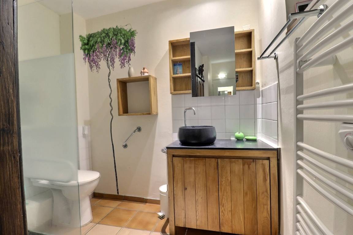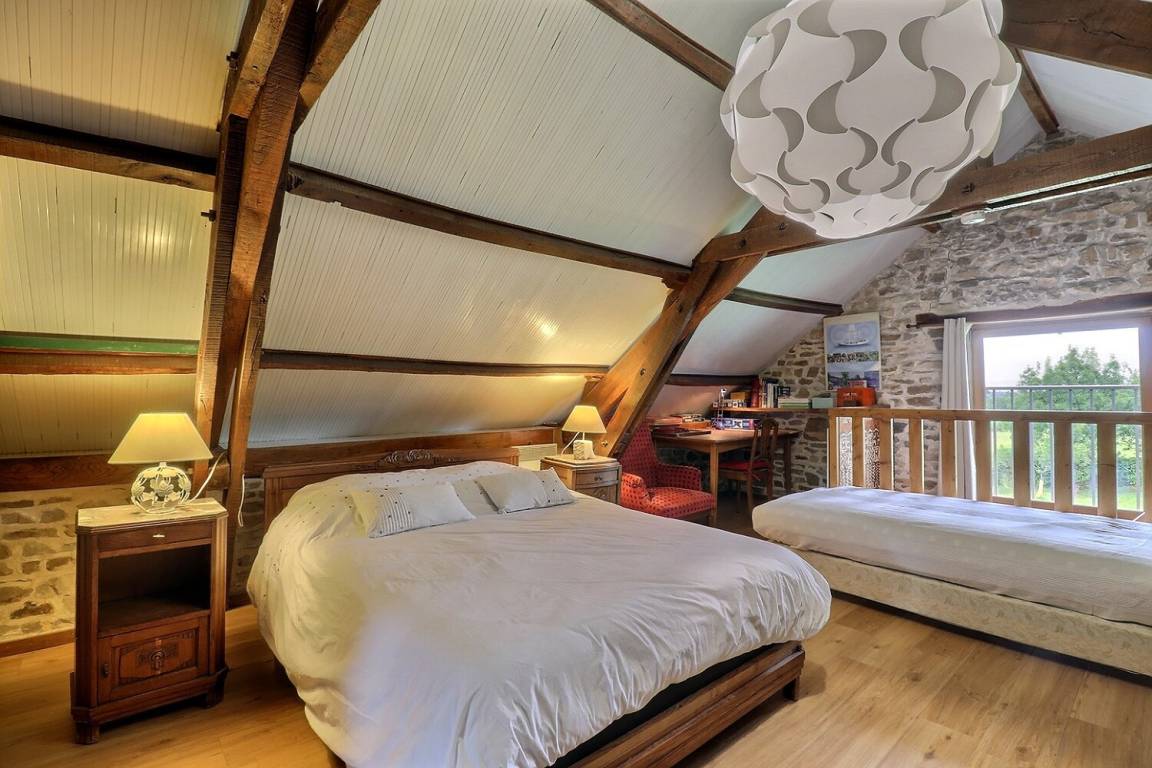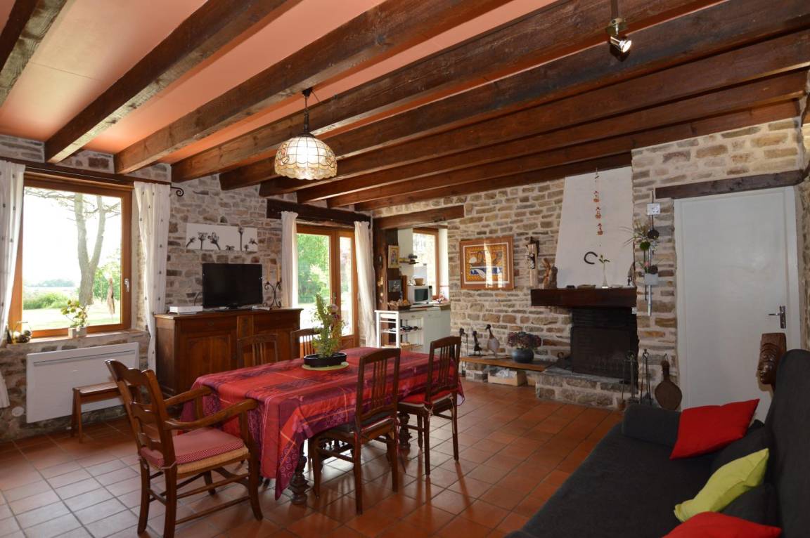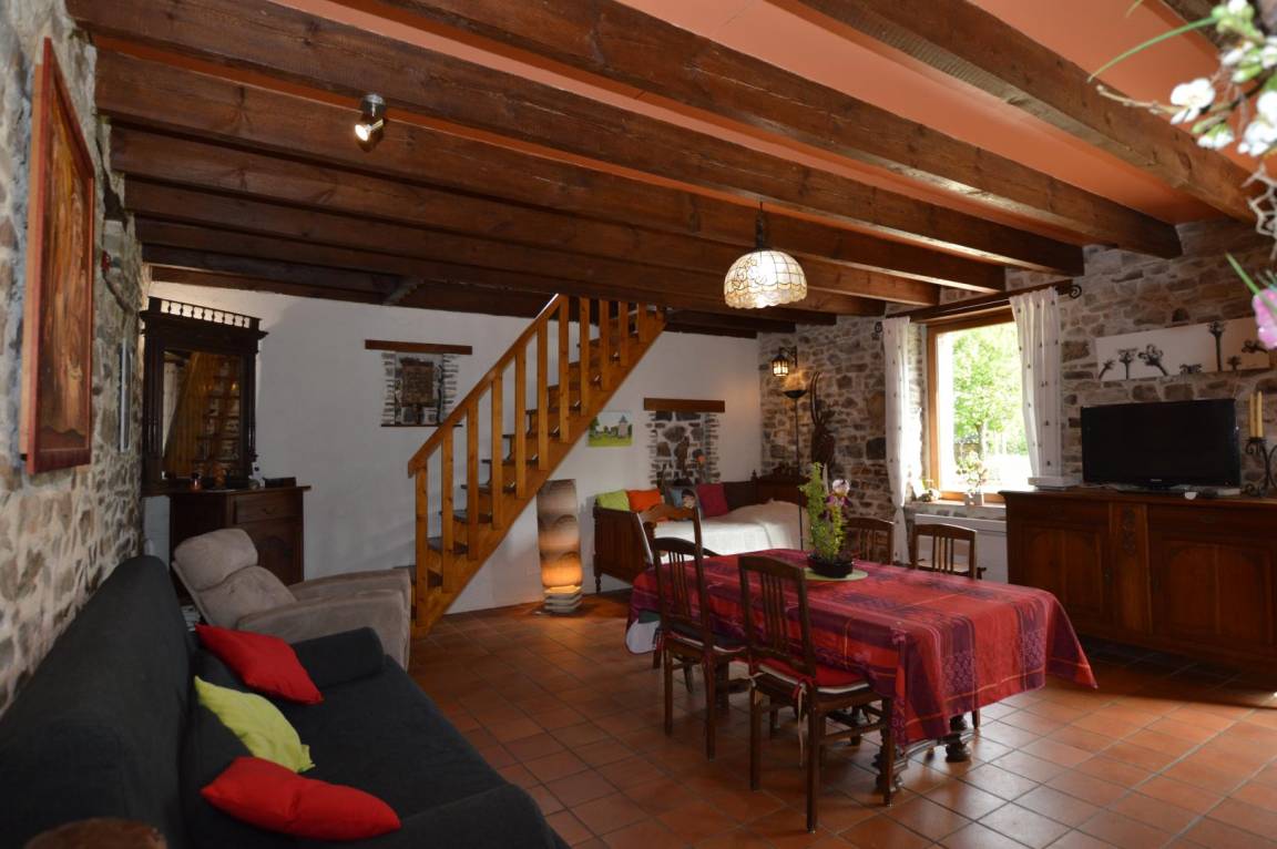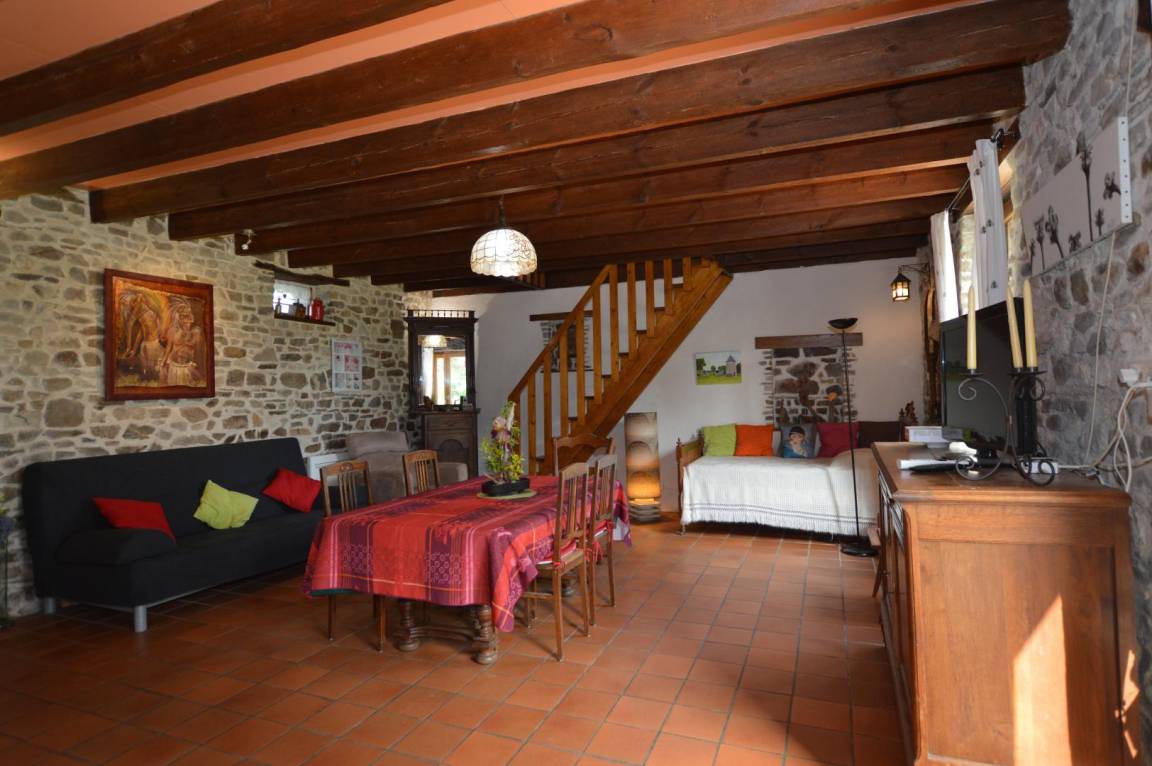 „Environnement magnifique. Maison pierre apparente mais trop chargée en deco. Manque petit coin salon avec bon fauteuil.“