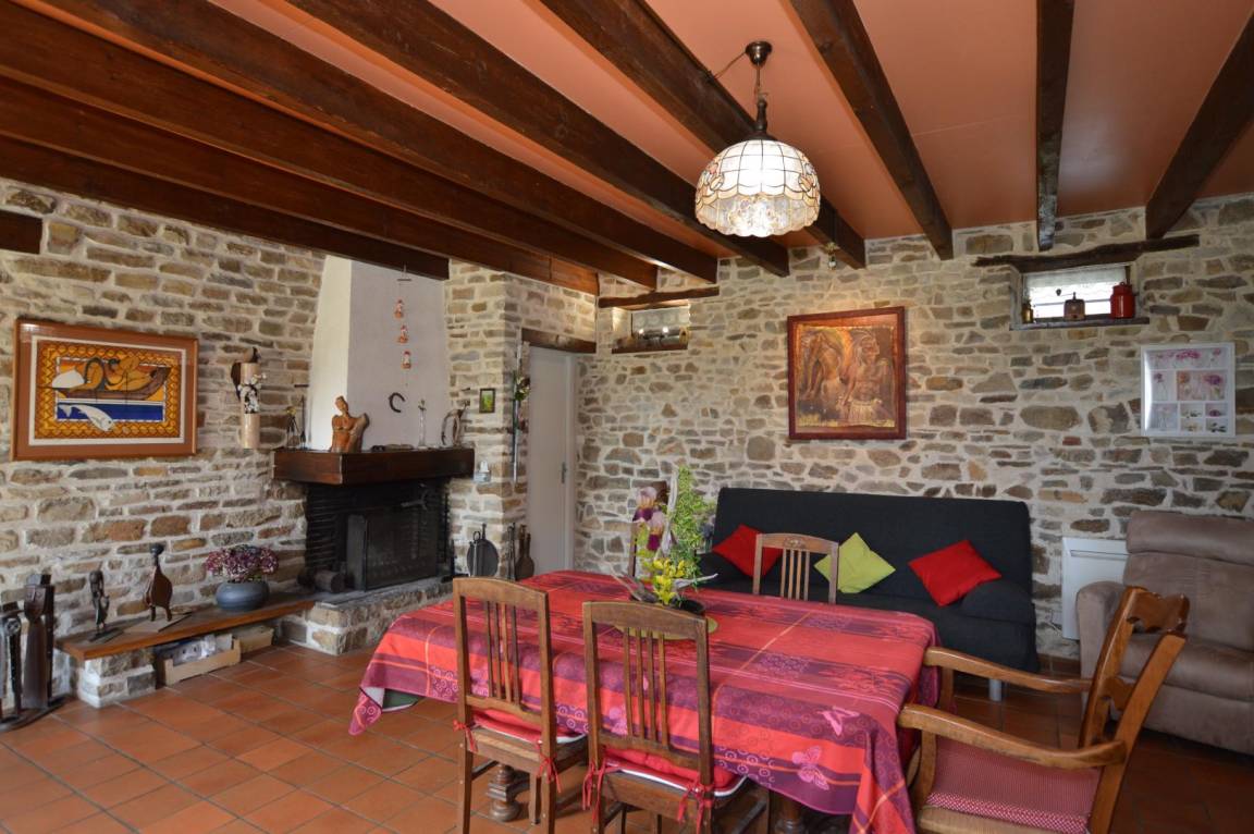 Im Erdgeschoss: eine Küche, ein Esszimmer mit Kamin und Ruhebereich, ein Badezimmer mit WC. Im 1. Stock: ein großes Schlafzimmer im Flur mit einem 140-Bett und zwei 90-cm-Betten.Elektrische Heizung im Preis inbegriffen.
