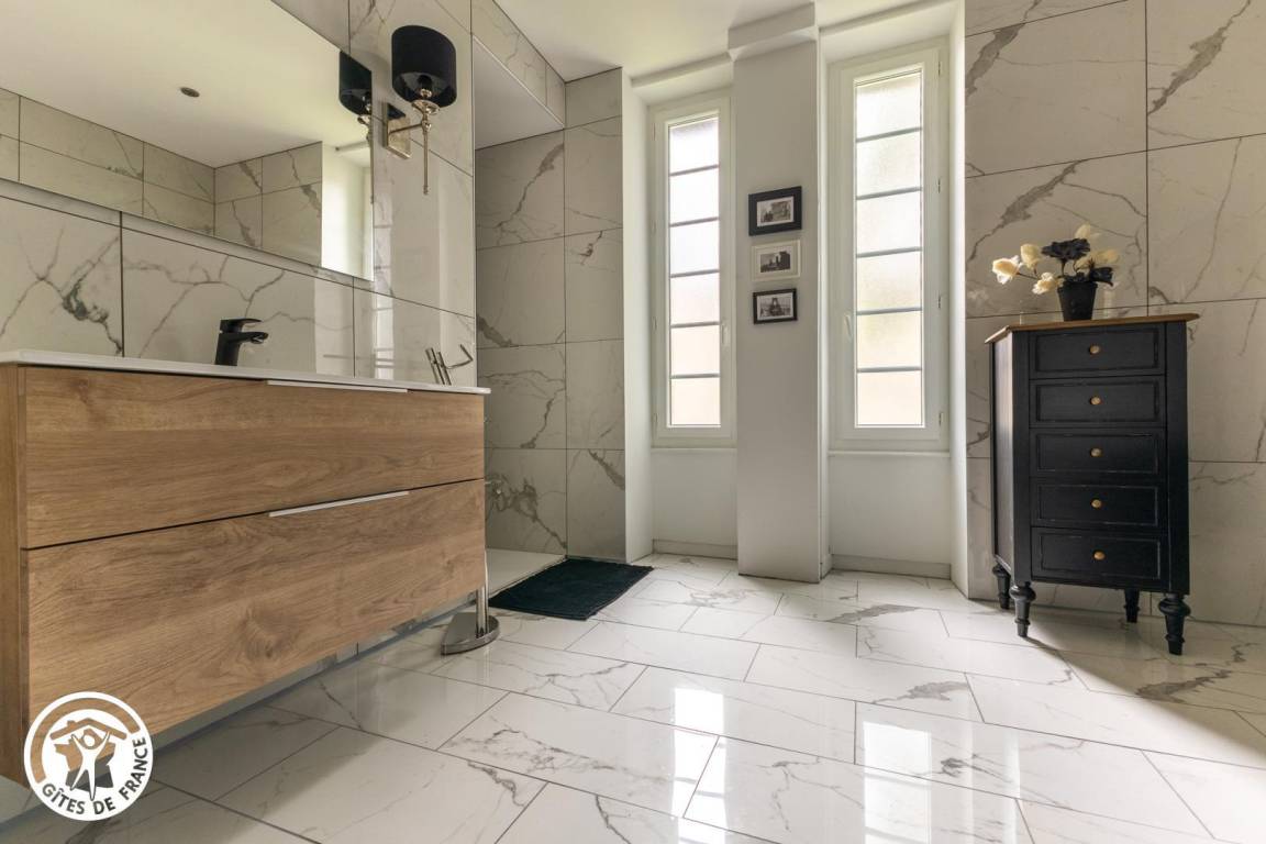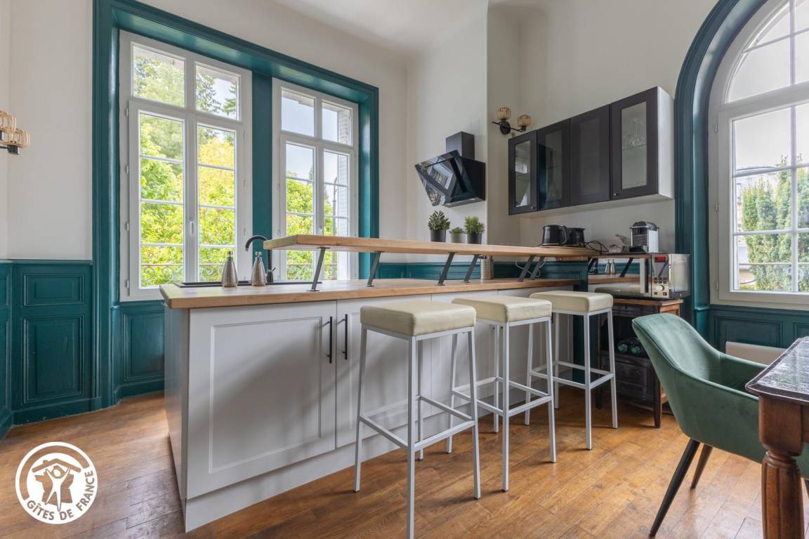 „Gîte 4 étoiles tout confort: Cuisine équipée avec tout le confort moderne (lave-vaisselle, micro-ondes, cafetière, bouilloire...), grande salle de bain, espace buanderie (avec machine à laver et sèche-linge très appréciable quand on a des enfants), grandes chambres (seul bémol mais c'est personnel: Literie notamment oreillers trop moelleux à notre goût). Villa située dans une rue paisible et proche du parc Fenestre et des commerces du bourg.“