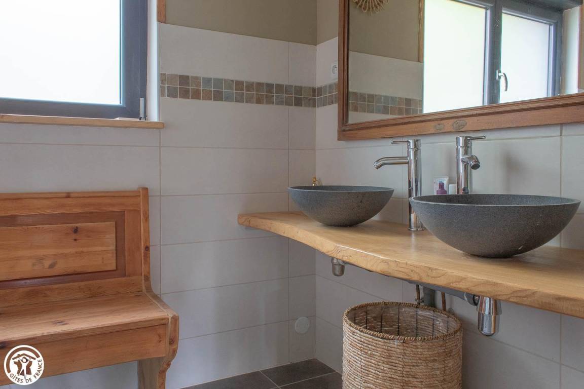 „Superbe gite avec tout le confort et super beau intérieurement, véritable dépaysement. Très bien situé si vous voulez être au repos, sentiers de randonnées à proximité mais pour les commerces il vous faudra prendre la voiture. Nous recommandons ce gite à 100%“