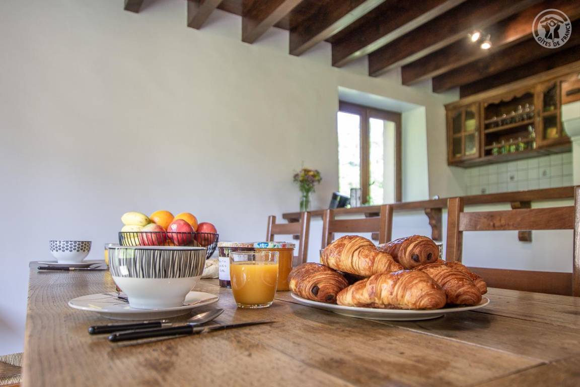„Gite ds un environnement très calme avec un grand jardin et de beaux arbres.Il manque quelques éléments de confort pour en profiter pleinement,par exemple des chaises longues et un parasol si on veut mettre la table autre part que sous les arbres.“