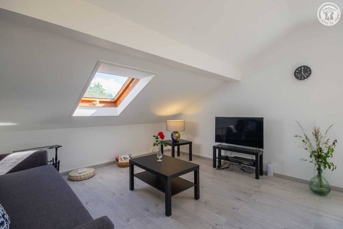 Ferienhaus im Haus der Besitzer, mit gemeinsamem Eingang. Auf der 1. Etage im Vergleich zu der Haustür, eine Eingangshalle, eine Küche, einem Wohnzimmer (Schlafsofa für 2 Personen), 2 Schlafzimmer (1 Doppelbett 140 x 190 cm / 2 Einzelbetten 90 x 190 cm), ein Badezimmer (Dusche), separates WC. Inszenierter Garten mit Treppe. Parken im asphaltierten Hof des geschlossenen Grundstücks.