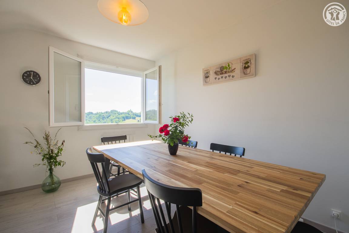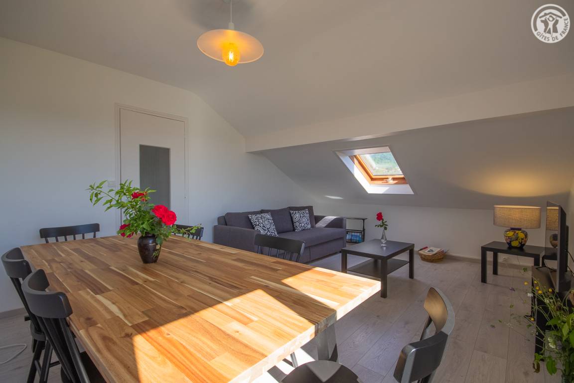 „Gîte très agréable (quasi neuf et très propre) et très bien équipé. Bien situé avec une belle vue sur la campagne environnante. Excellent accueil de la part de la propriétaire.“