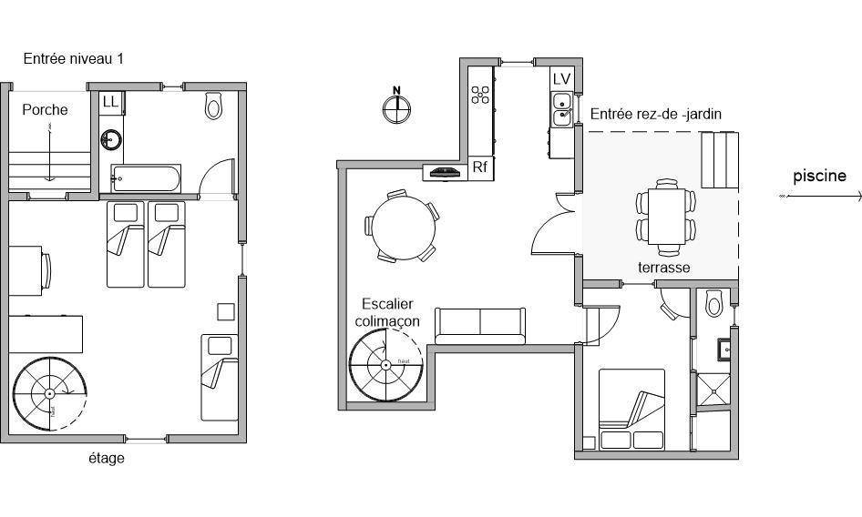 Niederungen des Pfades Abfahrt 8 Schritte bis zum Eingang im Erdgeschoss: Wohnzimmer offene Küchenbereich, ein Schlafzimmer mit 1 Bett 2 Pers. in 140cm, kleines Bad mit wc. Stock (Treppe Treppenhaus): ein großes Zimmer mit 2 Betten von 90cm vereinbar und einem 3. Bett 90cm, Badezimmer mit wc. Bettwäsche und Toilettenartikel zur Verfügung gestellt. Im Obergeschoss Zimmer kann auch externe Zugang im Erdgeschoss auf dem Norden parallel Parkplatz. KURTAXE INBEGRIFFEN.