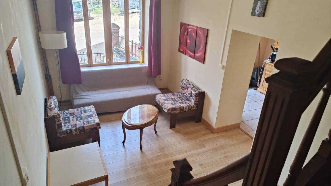 Erdgeschoss: Ausgestattete Küche, gefolgt vom Wohnzimmer (Zugang über 1 Stufe).